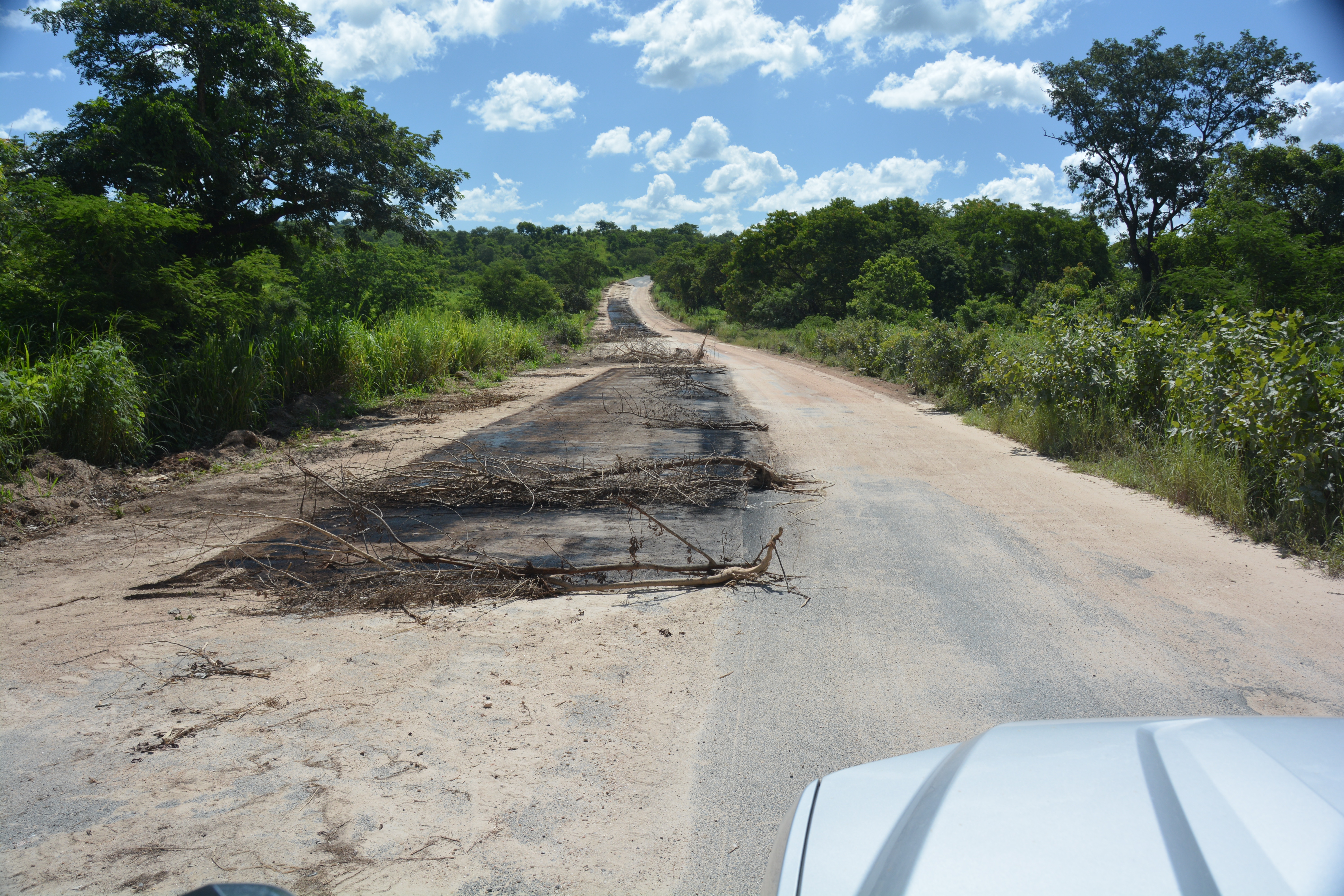 After Inchope we briefly saw this unique way of improving the roads – close half of it, spray oil on it, cover it with tree branches and then walk away forever