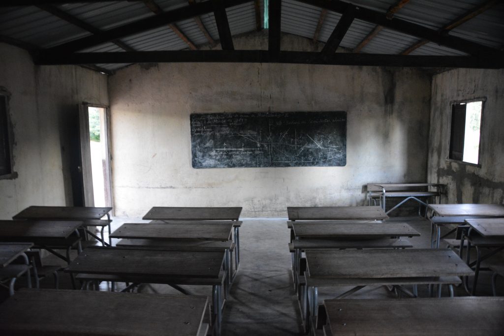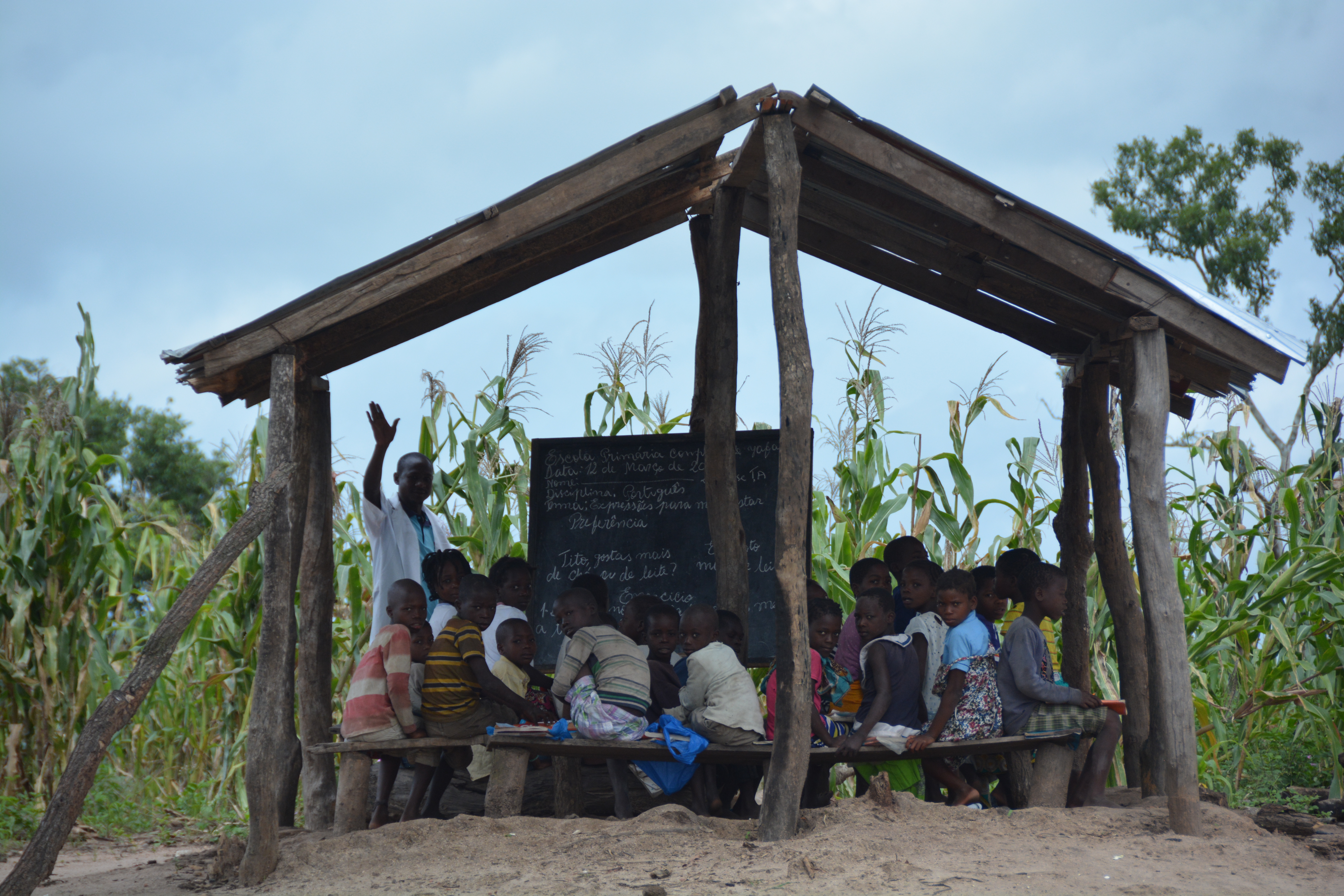 A school in a small village features outside learning – good for the steamy hot days but not good in the rainy season