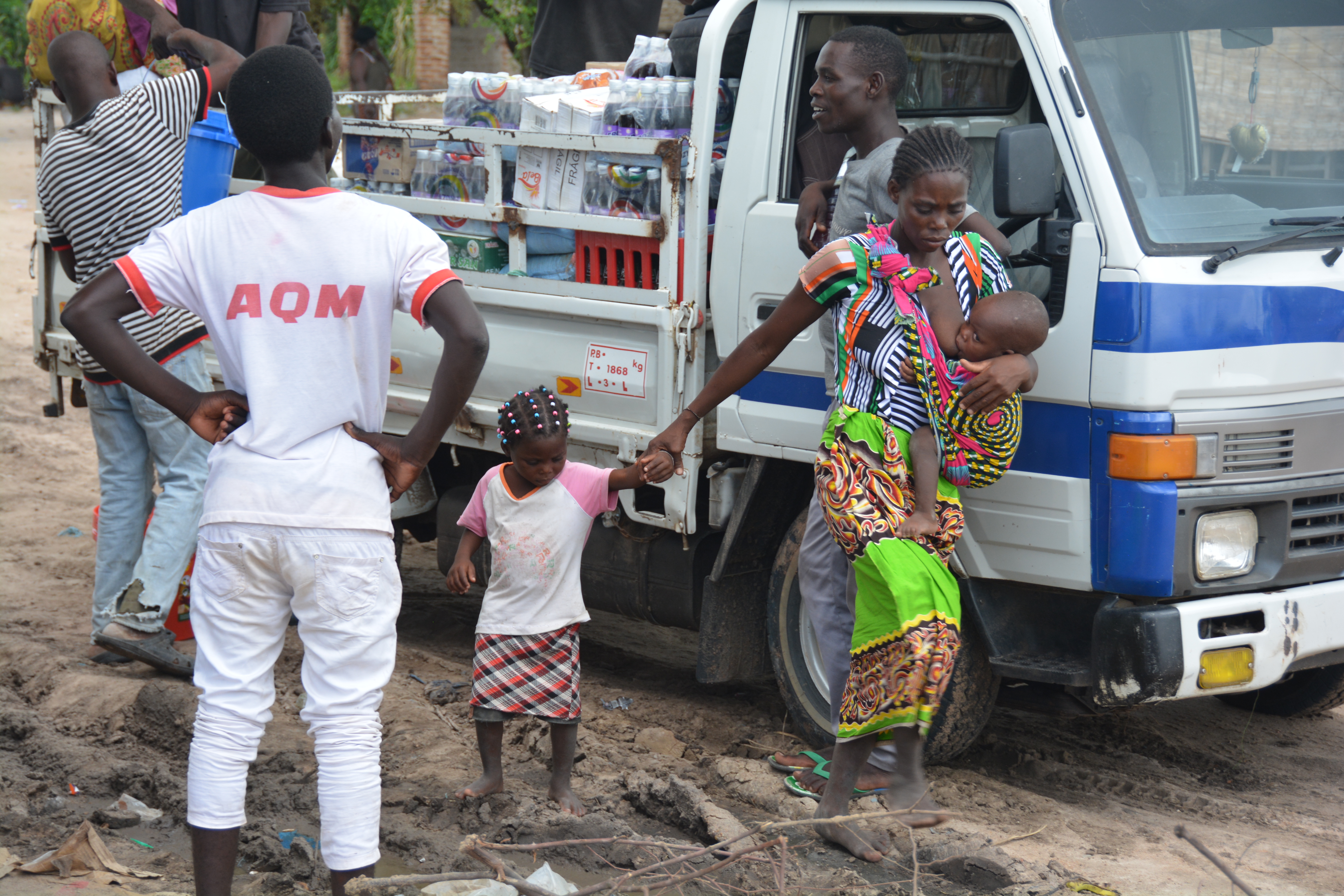 While the battery was getting changed Julie was taking in the local action, including this woman breastfeeding her infant while leading her child through the crowded streets