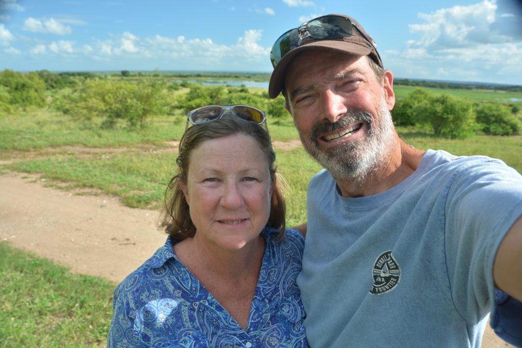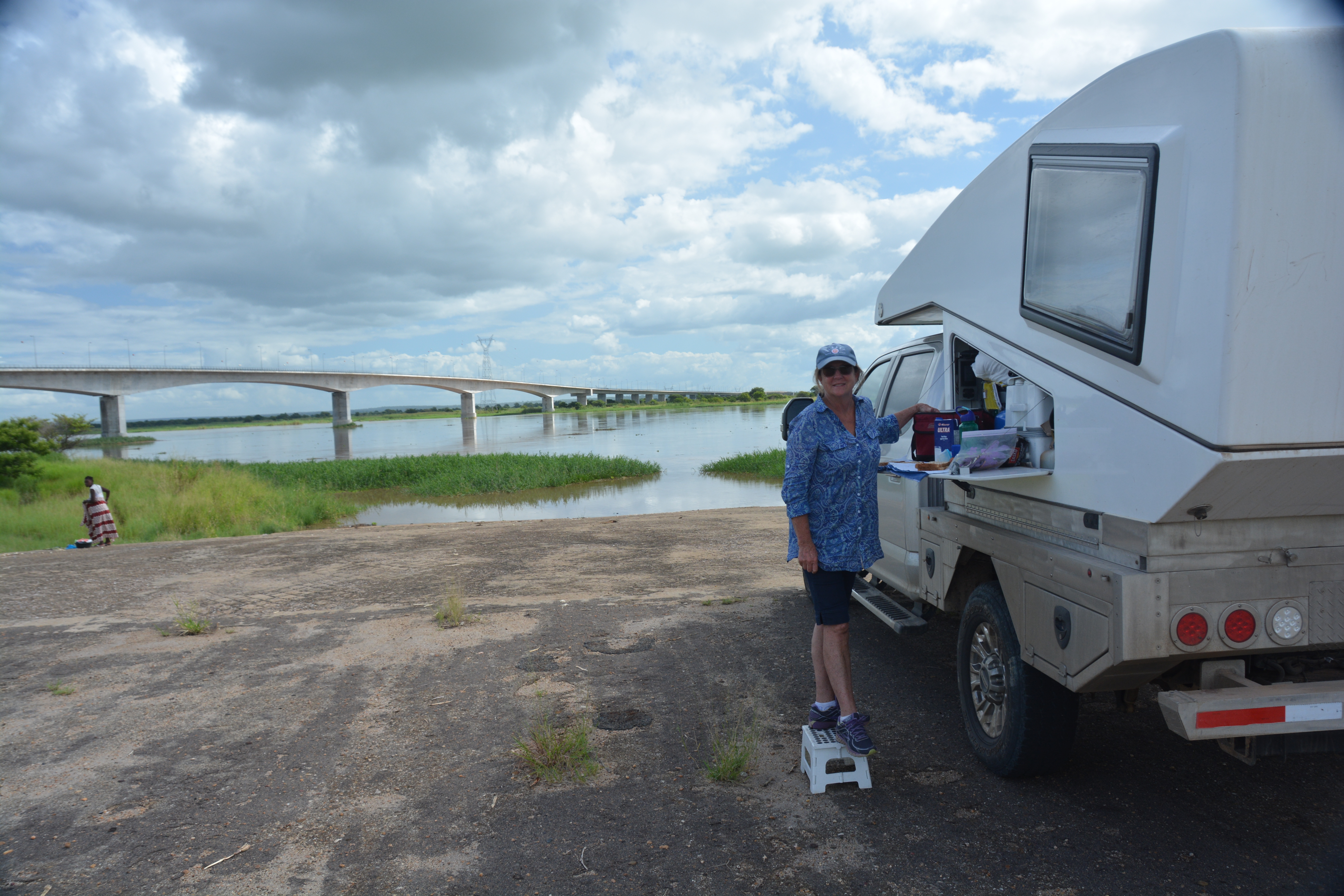 Julie making sandwiches for lunch on the banks of the mighty Zambezi River after we crossed their impressive bridge