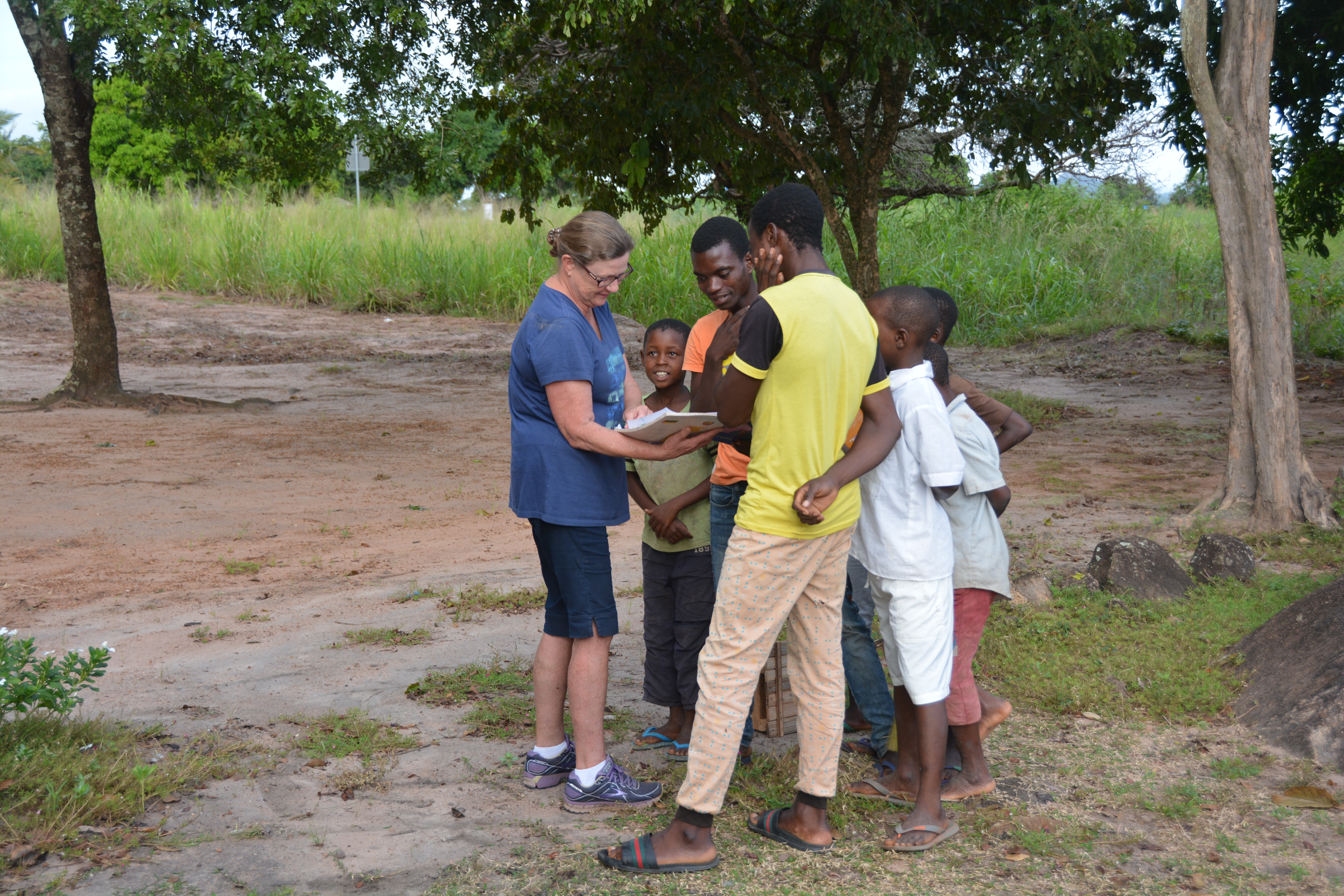 Julie, ever the diplomat and teacher, helps the kids on the English school work, to their huge delight