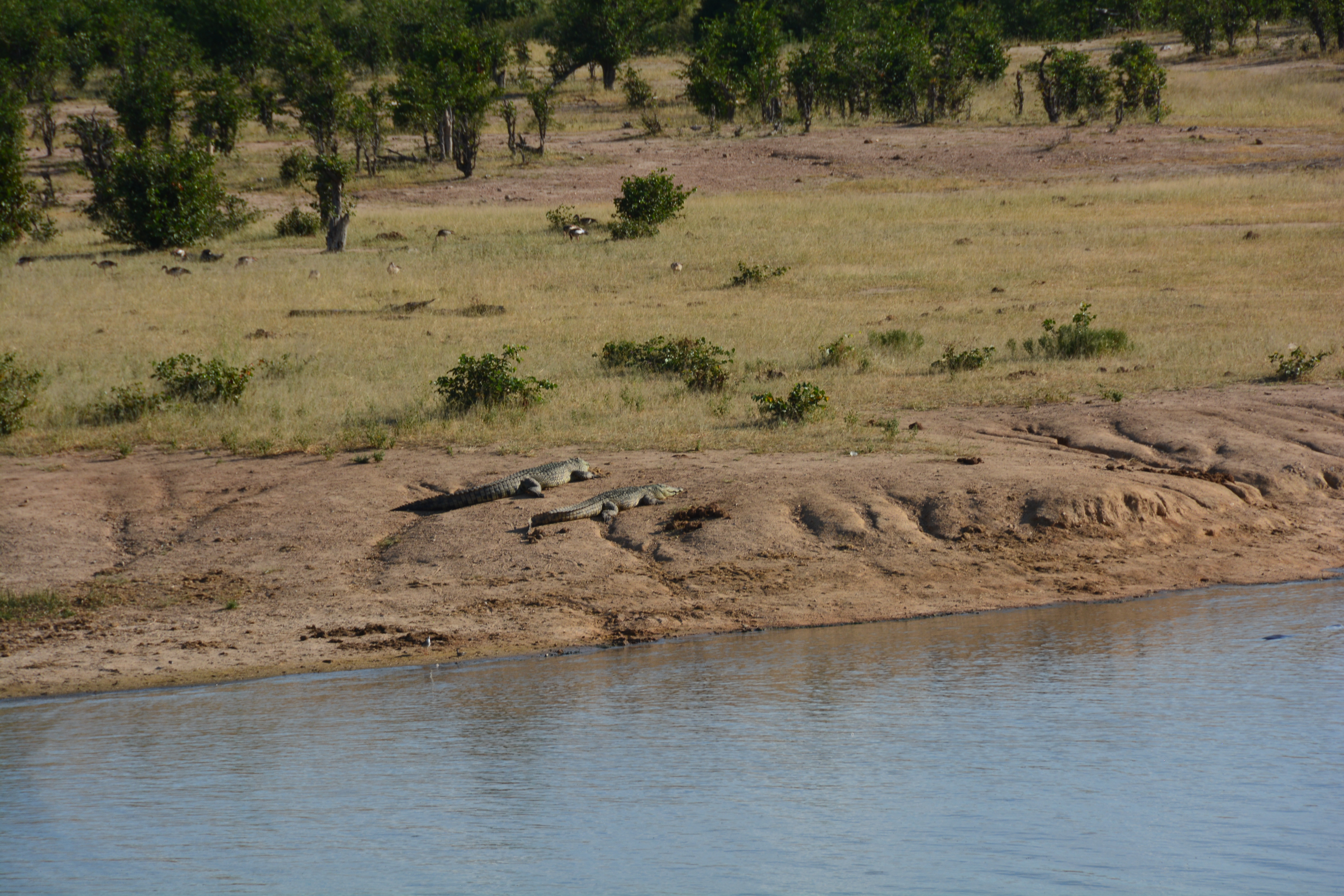 Two huge crocs also had an interest in what was happening at the waterhole but they seemed to live peacefully with the hippos and elephants