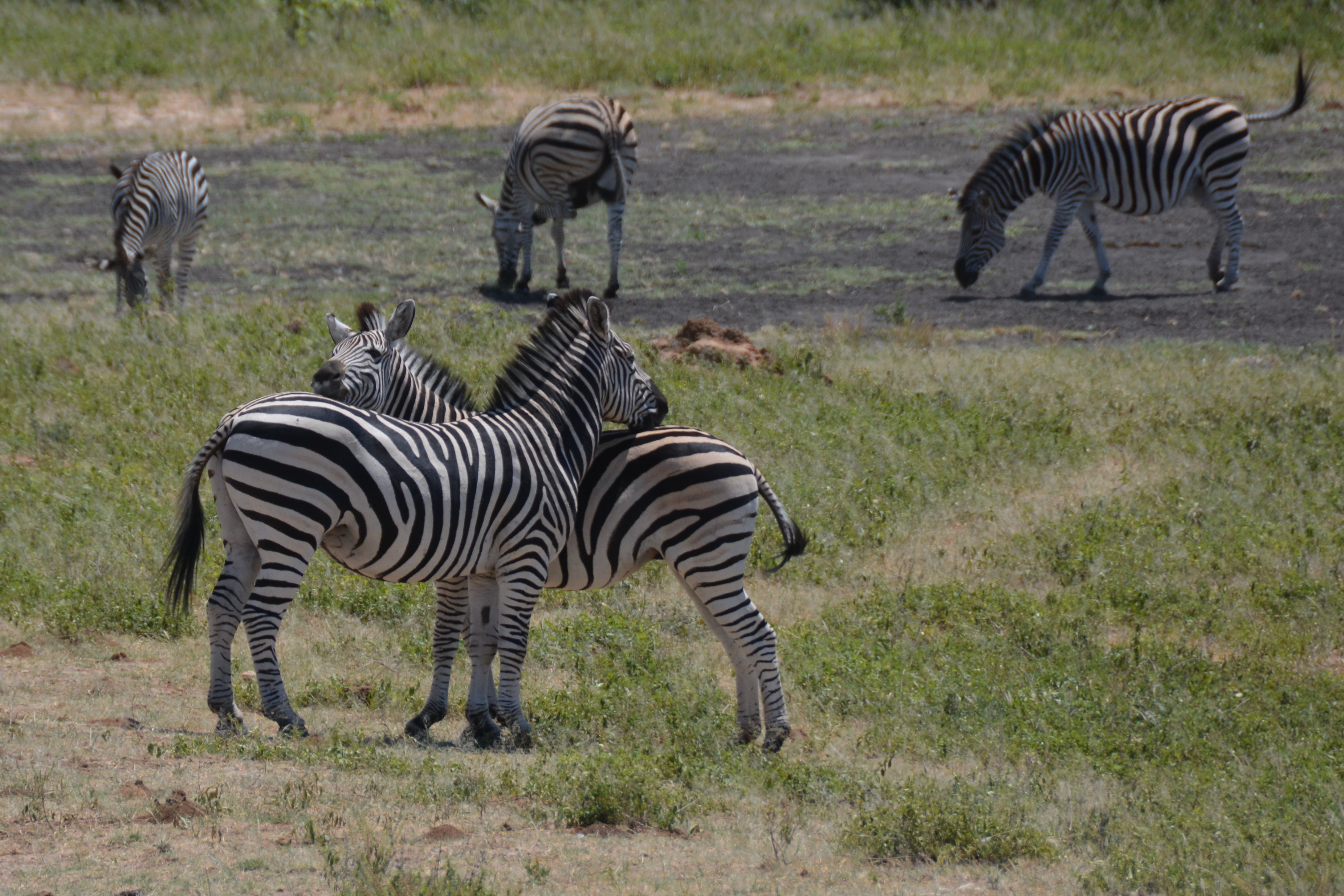 Zebras were always the most visible on hot days because they didn’t seek the shade and these two were showing typical zebra affection to each other
