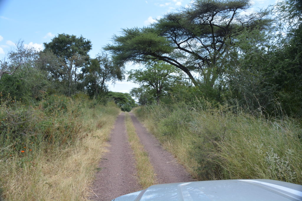 We headed towards the main gate of the camp through a long section of tall thick scrub with almost no animals to see and the sun beating down on us without mercy. Most waterholes had been abandoned, the roads were dreadful and there wasn’t a single other living being about. We limped into Main Camp to pay more fees, had a picnic lunch in some precious shade and left the park. We camped that night at a place nearby called Tusker Campsite with its own waterhole, visits by the neighbouring wildlife and a little lodge serving cold beer and friendly cheer.