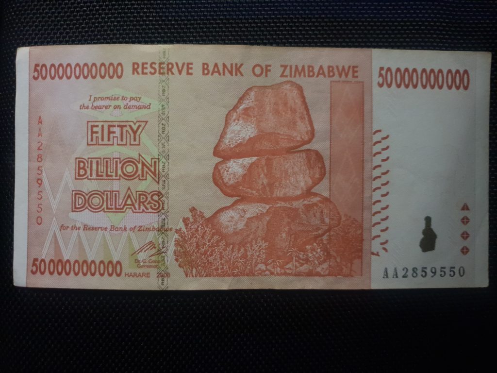 We arrived in the town of Hwange, today a town supporting the huge mines and quarries in the area, and made a few purchases at their large supermarket. The currency for the locals is the new Zimbabwe dollar, recently introduced because inflation had driven the largest note of the old currency in the country to 50 billion dollars – yes, that’s $50,000,000,000. Today the exchange rate seems to be quite variable, anywhere from two to three New Zimbabwe Dollars to the US dollar depending on where you are. Prices in the supermarket were in Zimbabwe dollars but we paid in US dollars.
