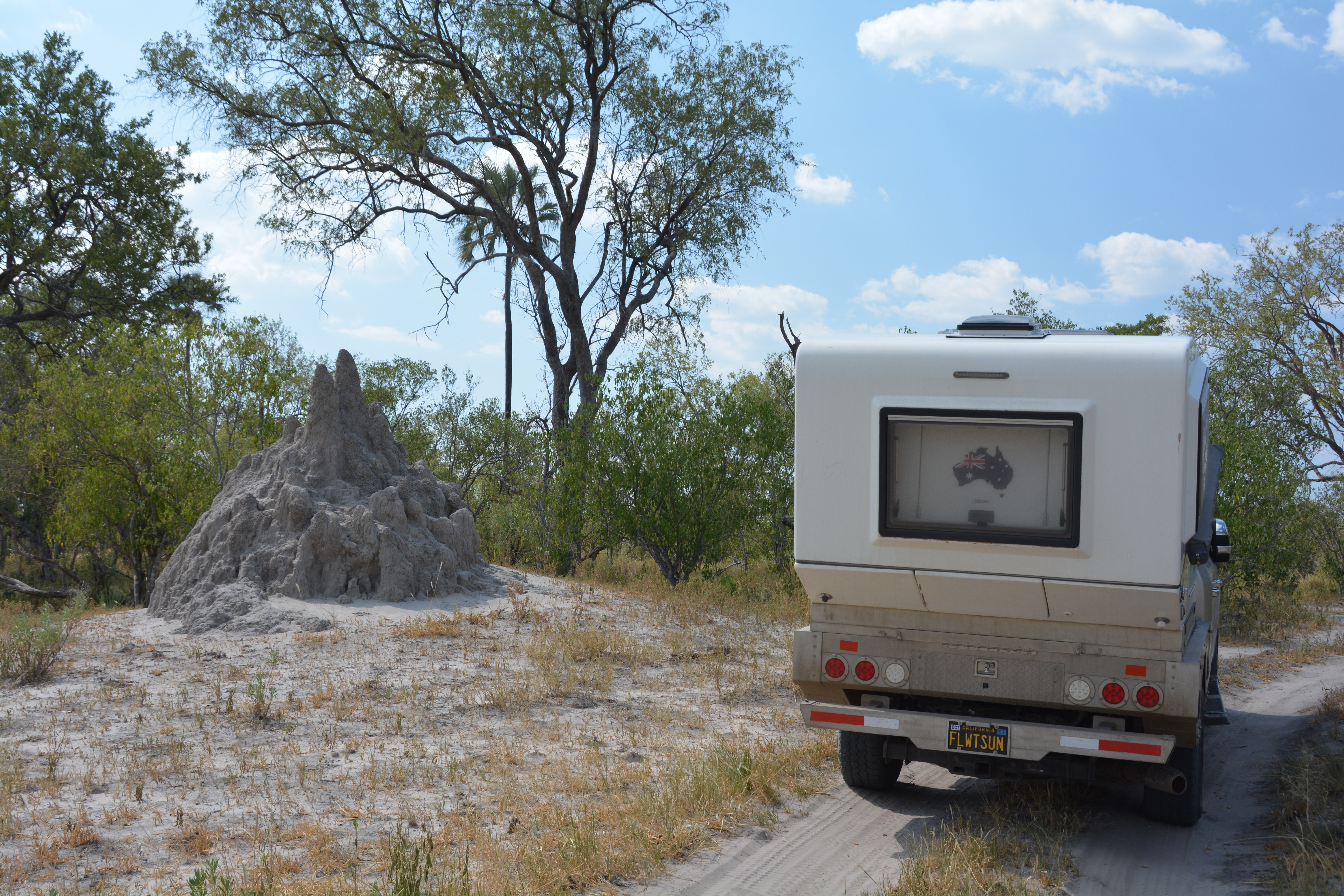 After a full day of important administration issues in Maun, including the onerous task of booking future campsites, my haircut at the African Dreams Salon, a full catch up on laundry at the Fresh Exclusive Night Club which doubles as a laundry during the day, restocking supplies, banking, and an important oil and filter change for Tramp we travelled east towards the great Botswanian interior. Awaiting us was the vast Kalahari Desert and its famous salt pans where we planned to spend up to five days or until our fuel ran out.