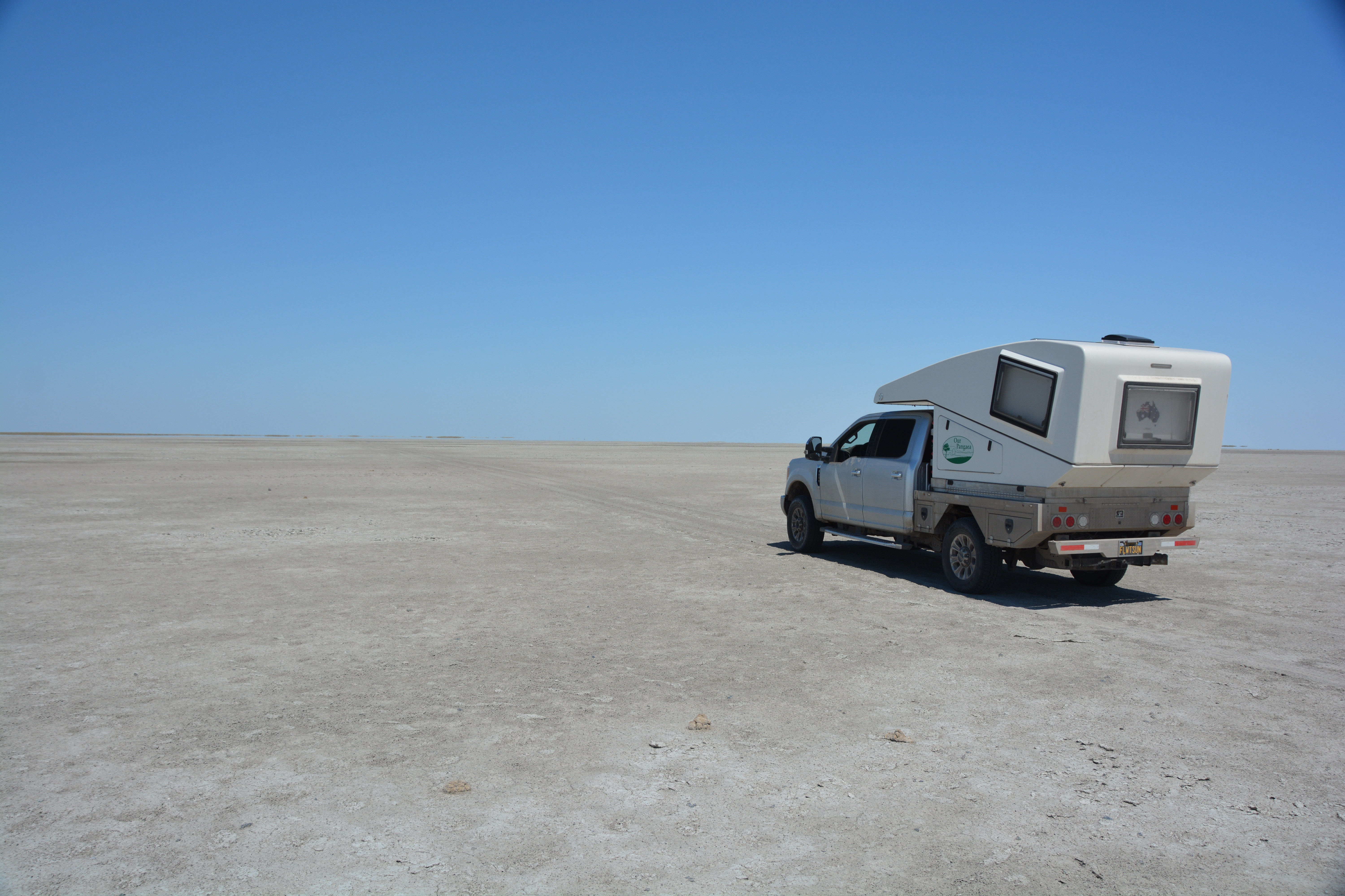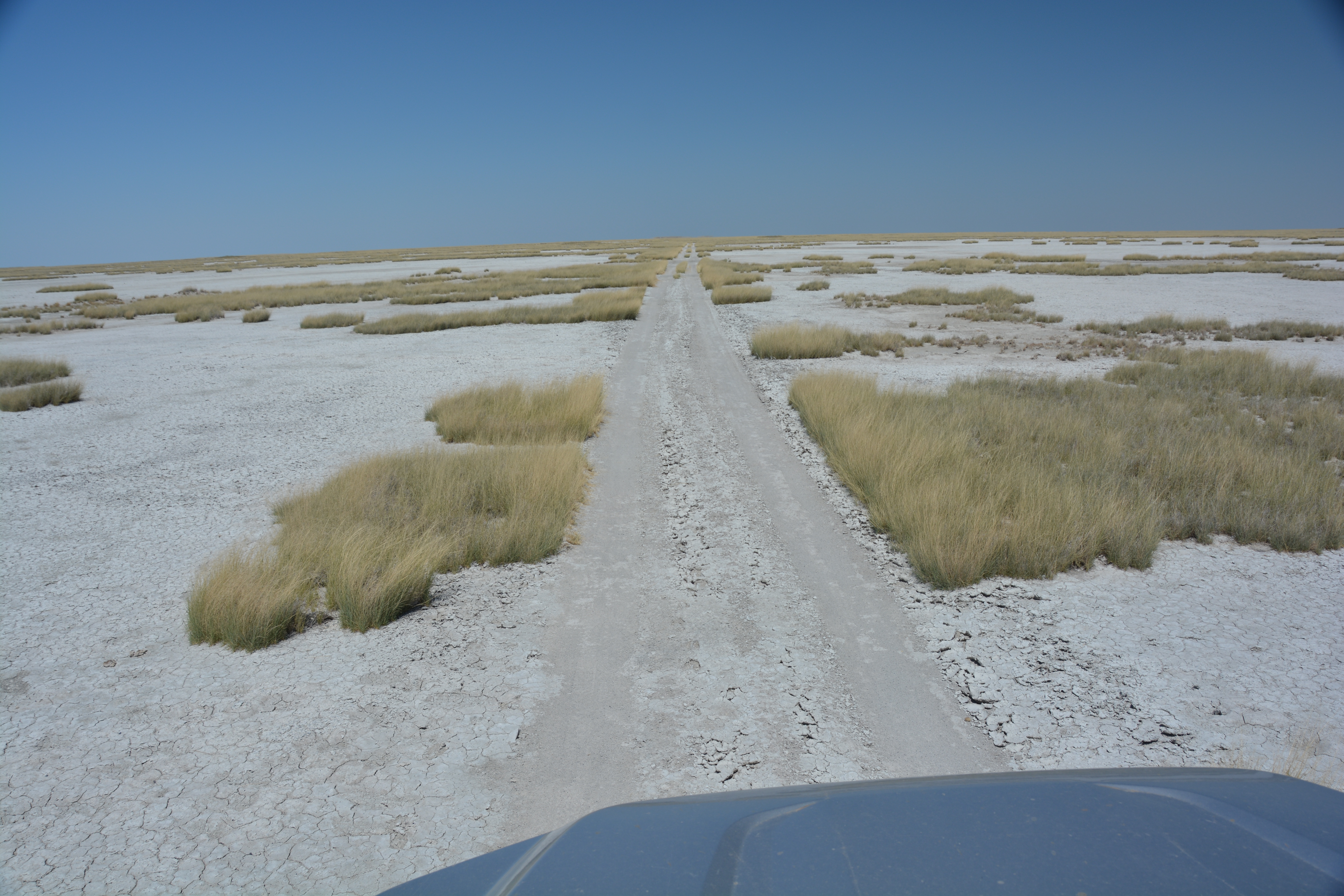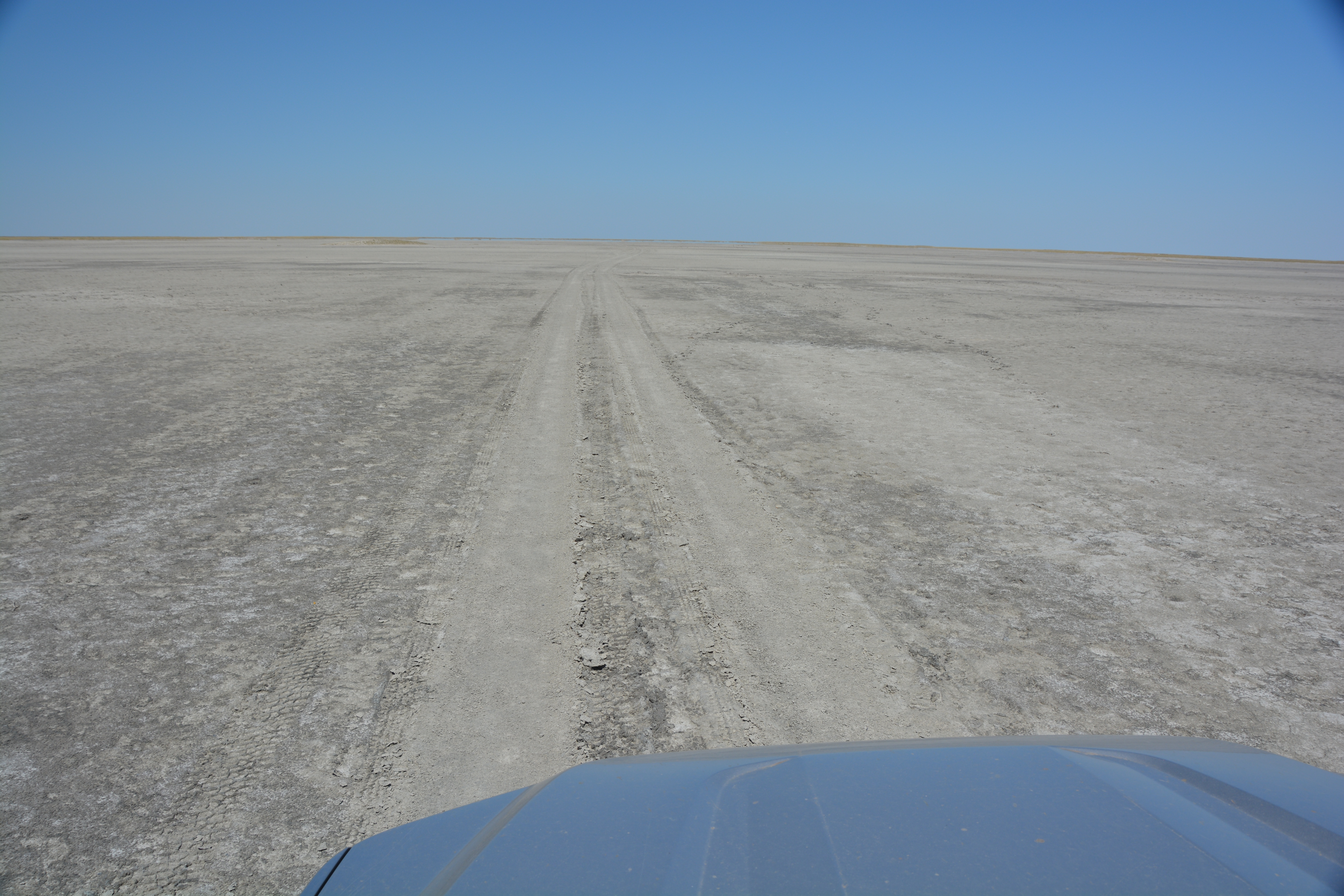 Oh my, we hit the edge of the Nwetwe salt pan and had to be careful to follow the vague track across this nothingness