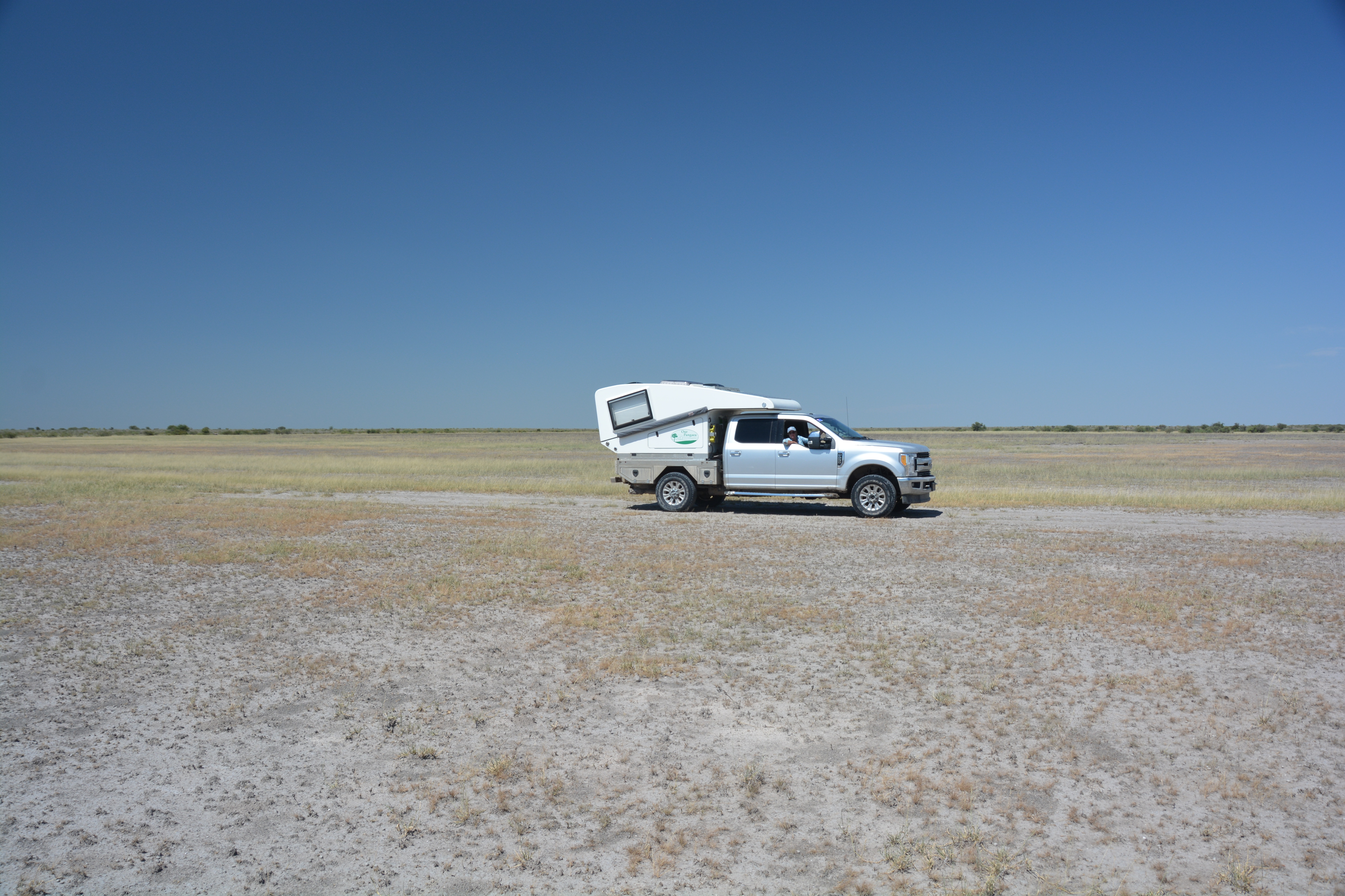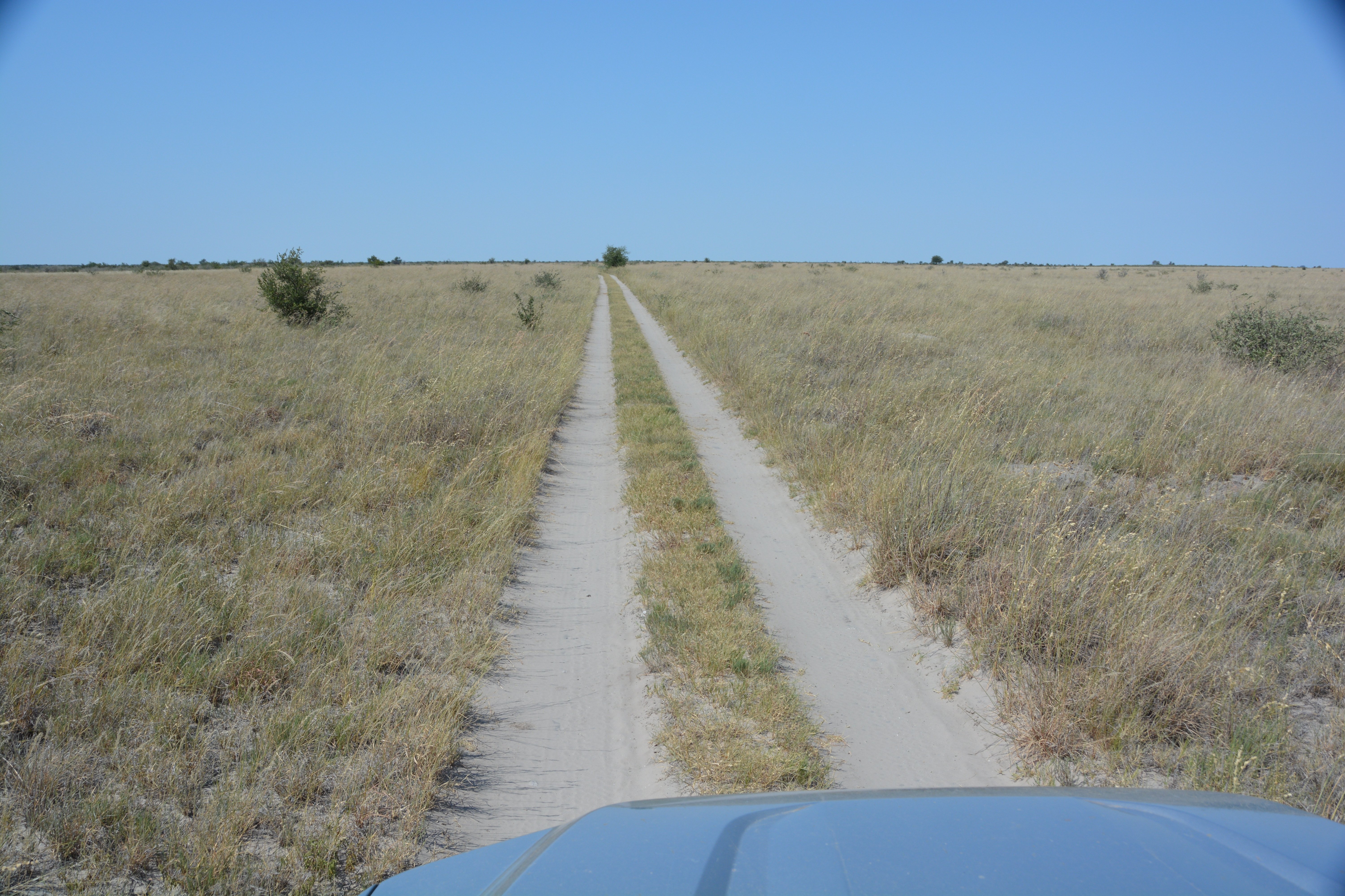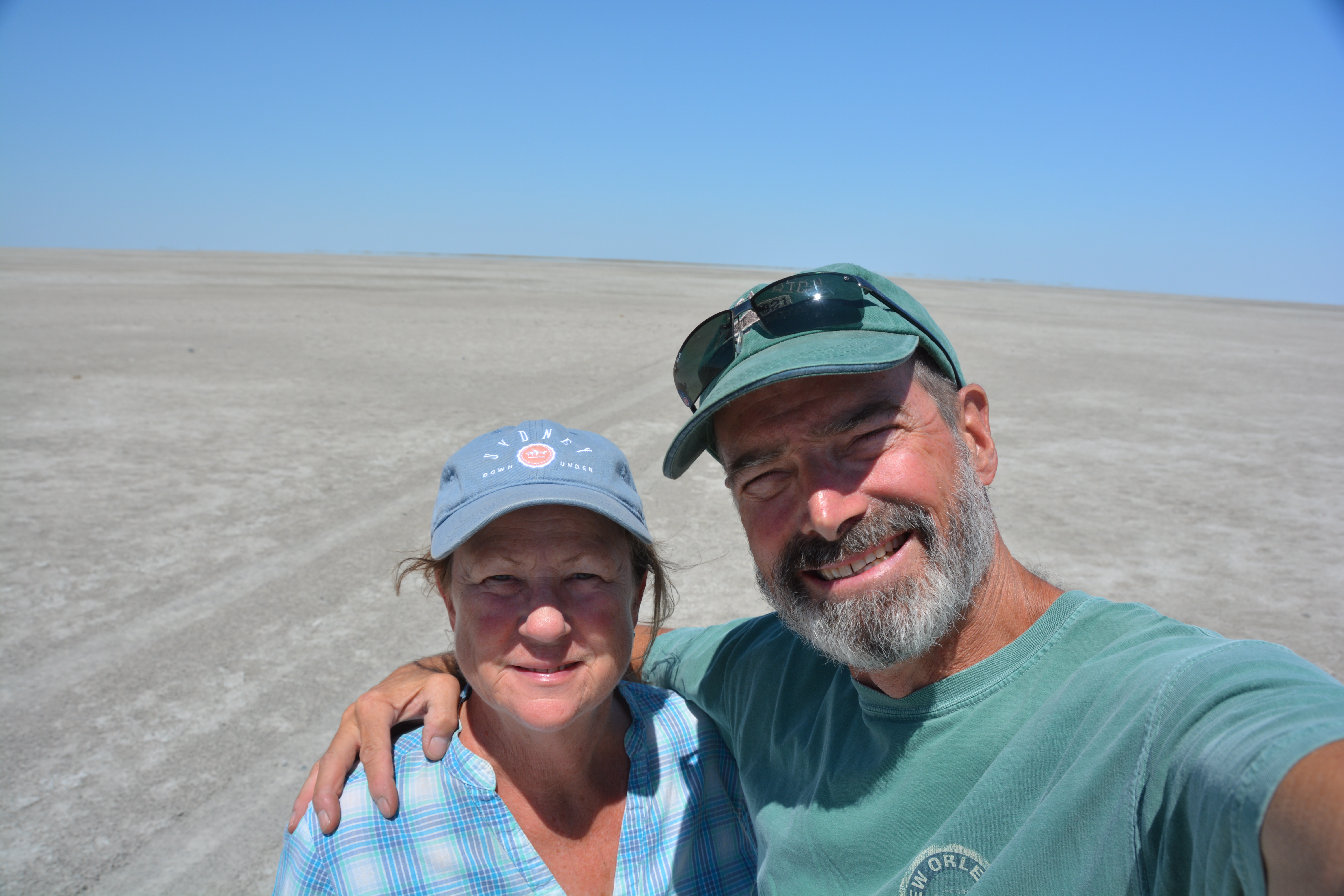 Oh my, we hit the edge of the Nwetwe salt pan and had to be careful to follow the vague track across this nothingness