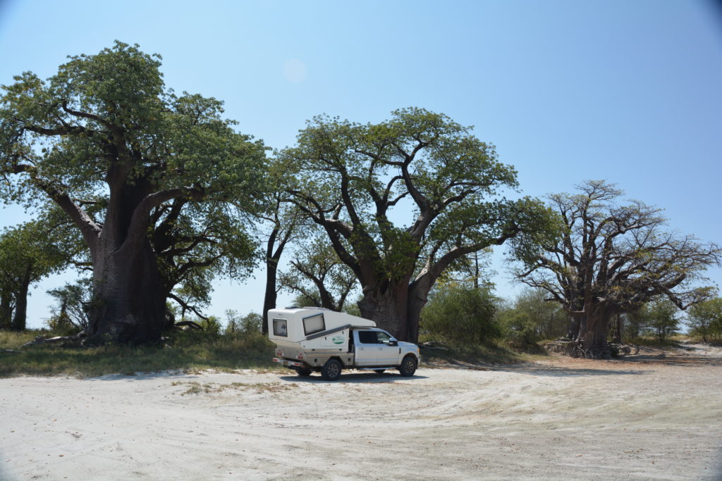 After camping at a beautiful spot on the Boteti River west of the regional town of Maun, the sounds of hippos, donkeys and frogs competing for attention, we headed further east and entered Nxai Pan National Park, the northern most extension of the expansive Kalahari Desert and home to some of the most famous trees in Africa.