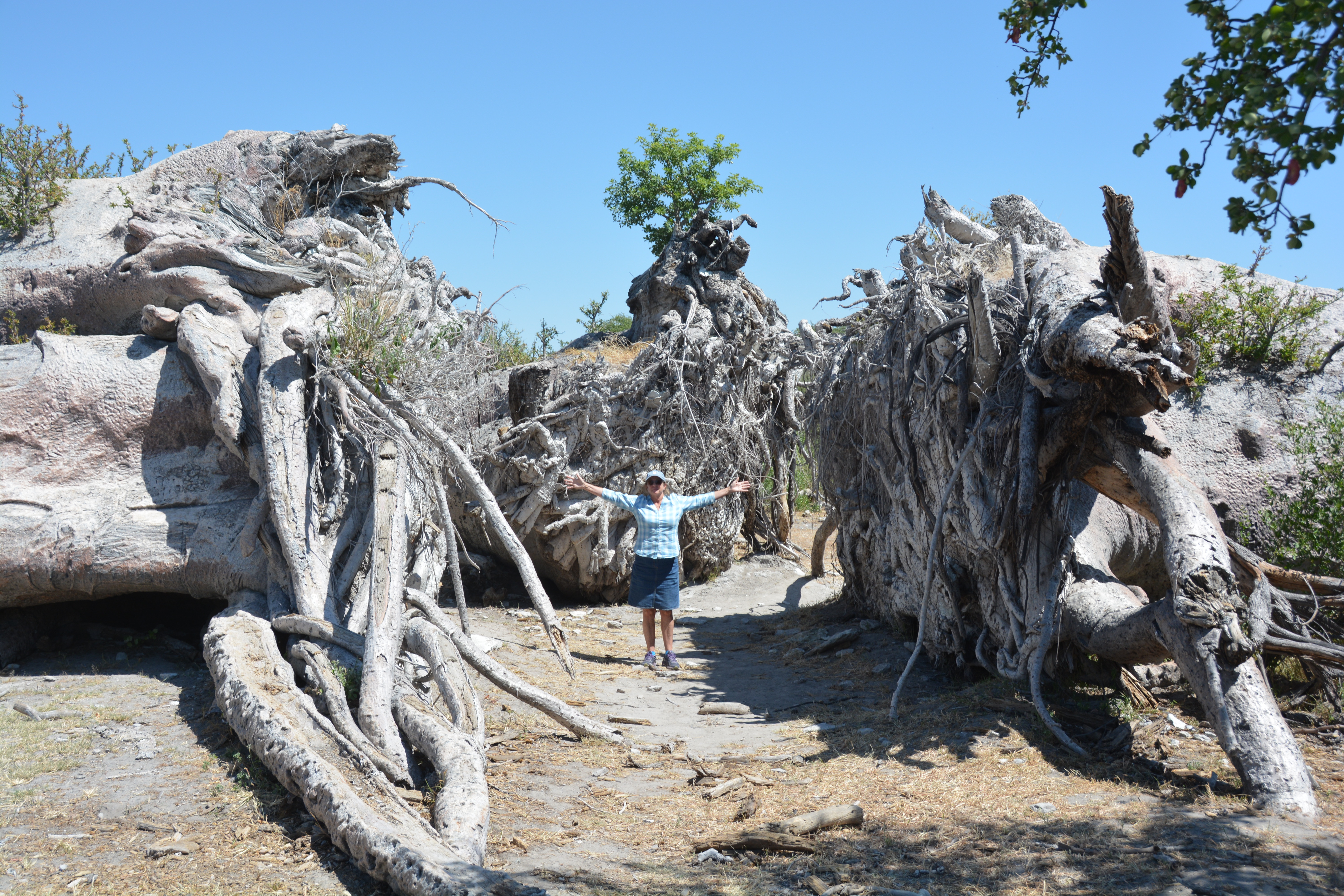 Julie is standing in the middle of what was the baobab trunk before it split into different pieces and fell apart