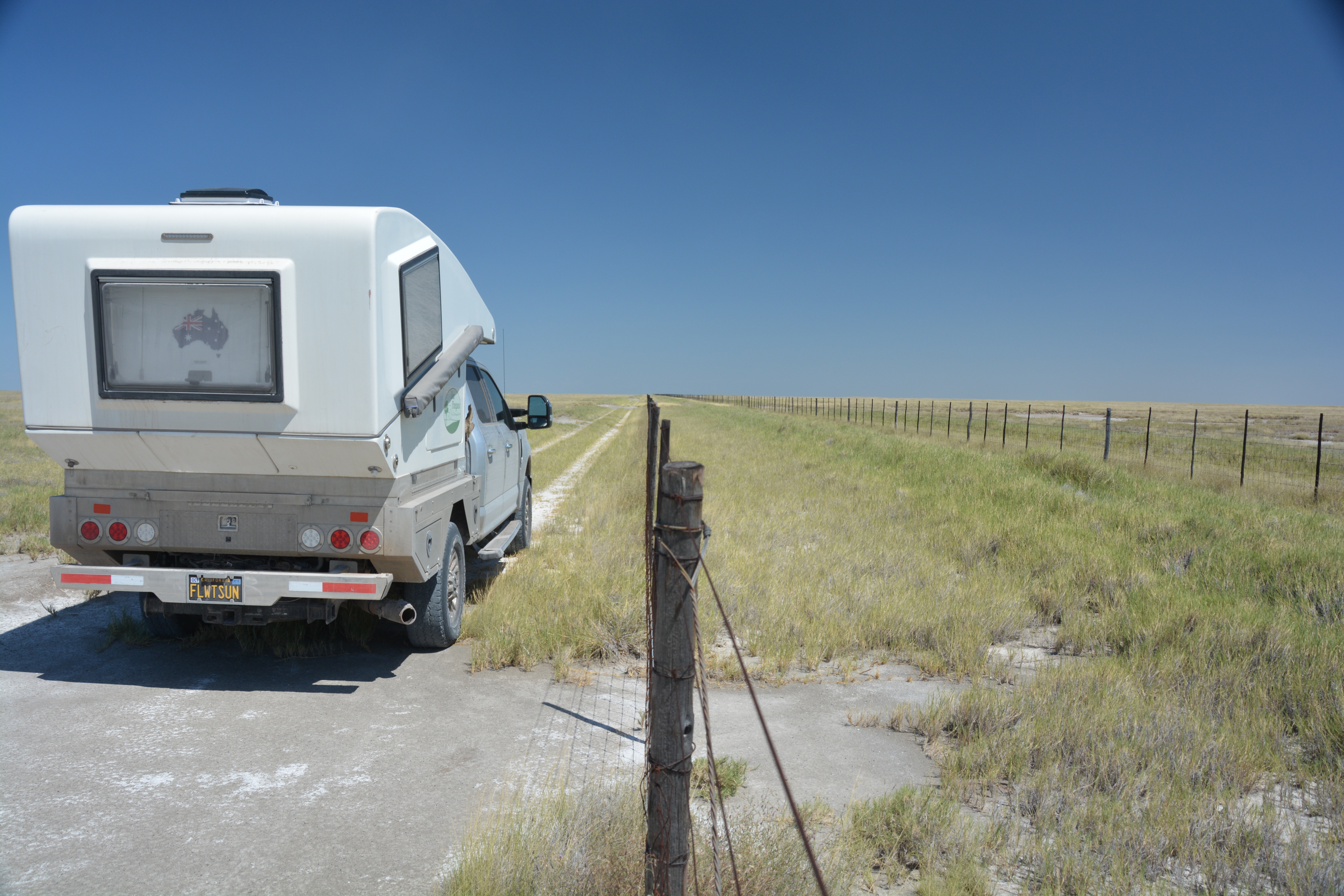 After a lunch stop in the middle of nowhere we finished the Pan crossing and eventually made the double buffalo fence, erected to stop the spread of Hoof and Mouth Disease, and with the advice of the lonely inspector in this forsaken place, we followed the fence about 80 kilometres until we reached the paved road which bisects the northern parts of the Kalahari Desert. What a fabulous experience this crossing from Greta to the road had been!