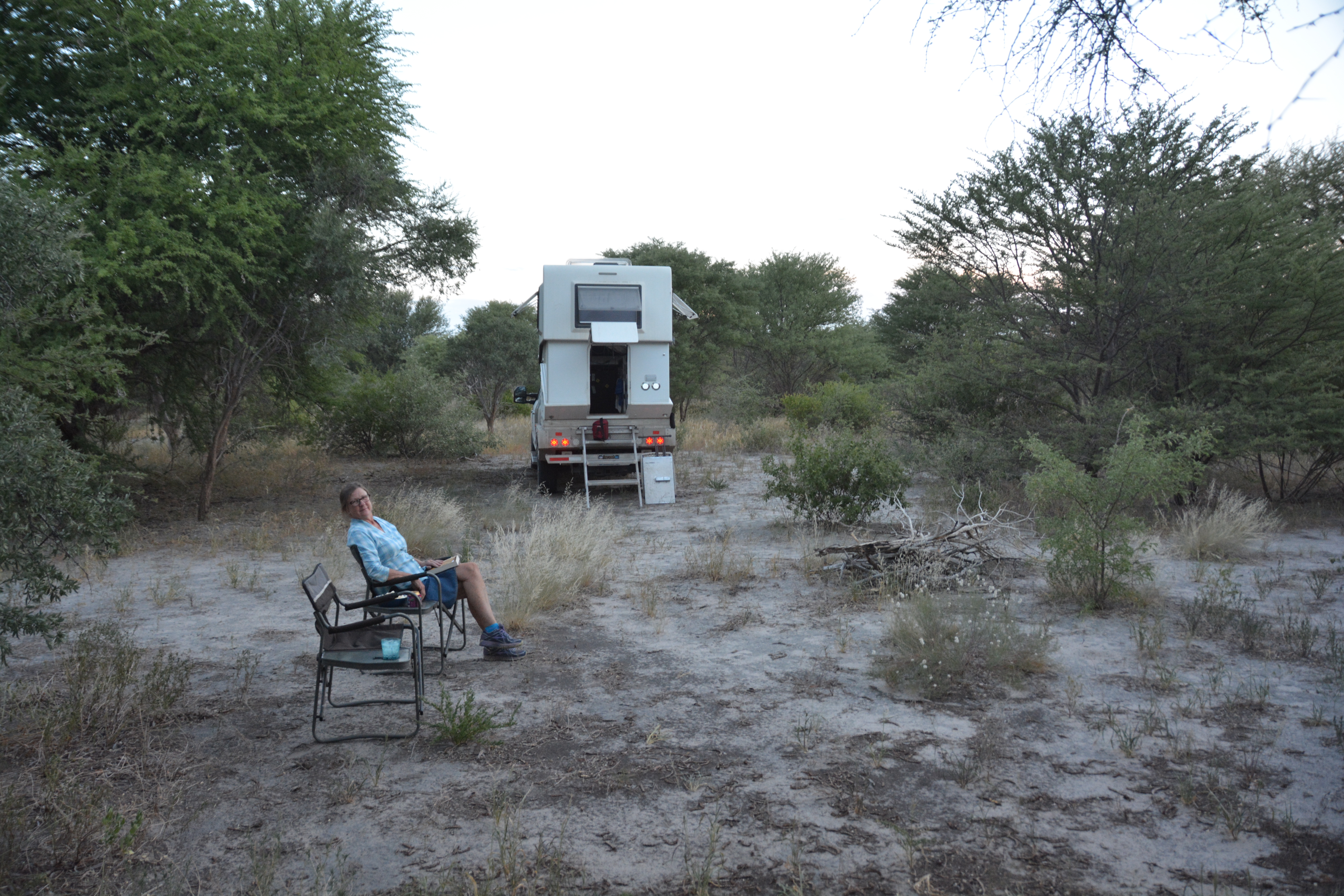A rare camp in the wild bush before crossing into the Kalahari game reserve the following morning – check out the collected wood ready for the fire right after this photo