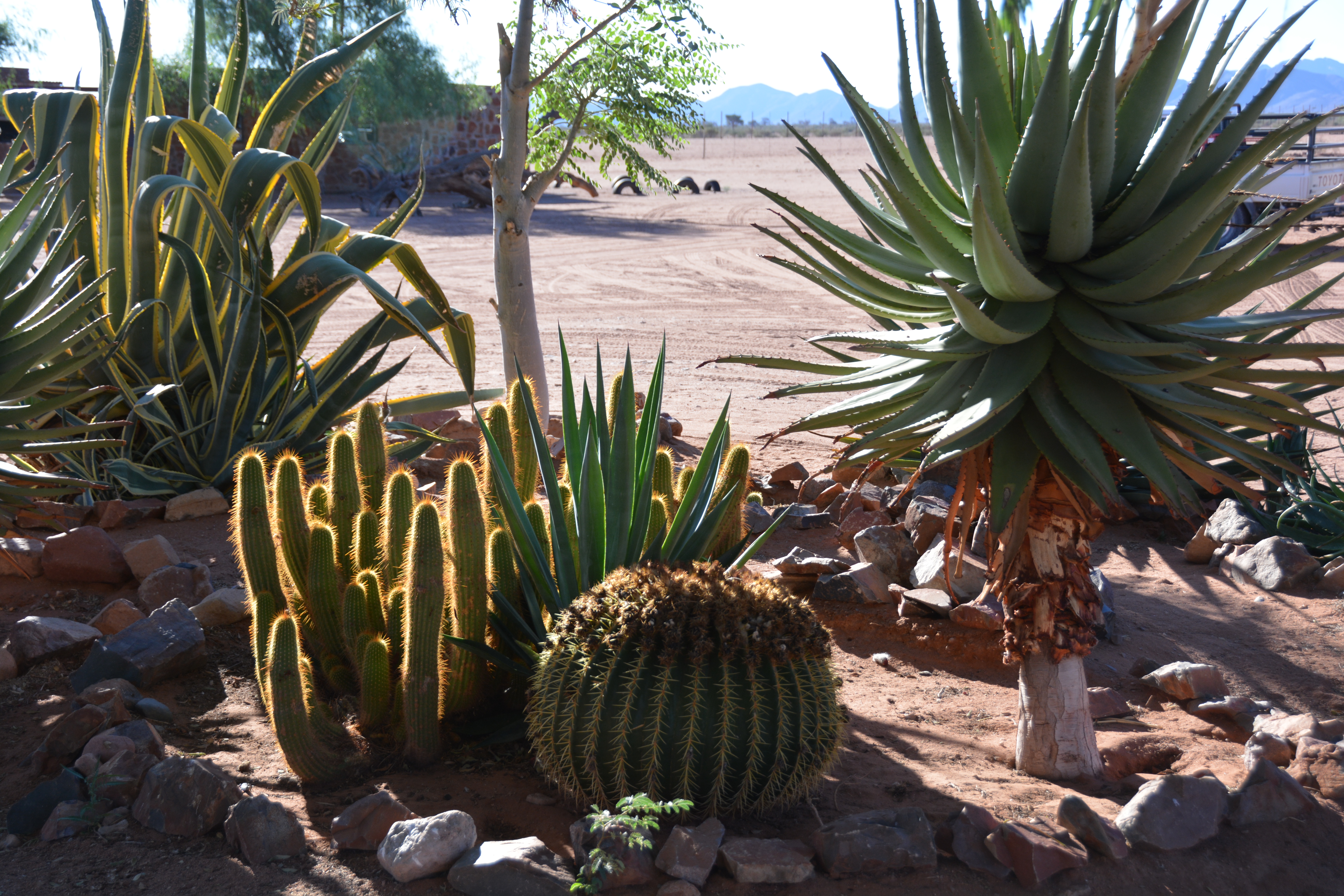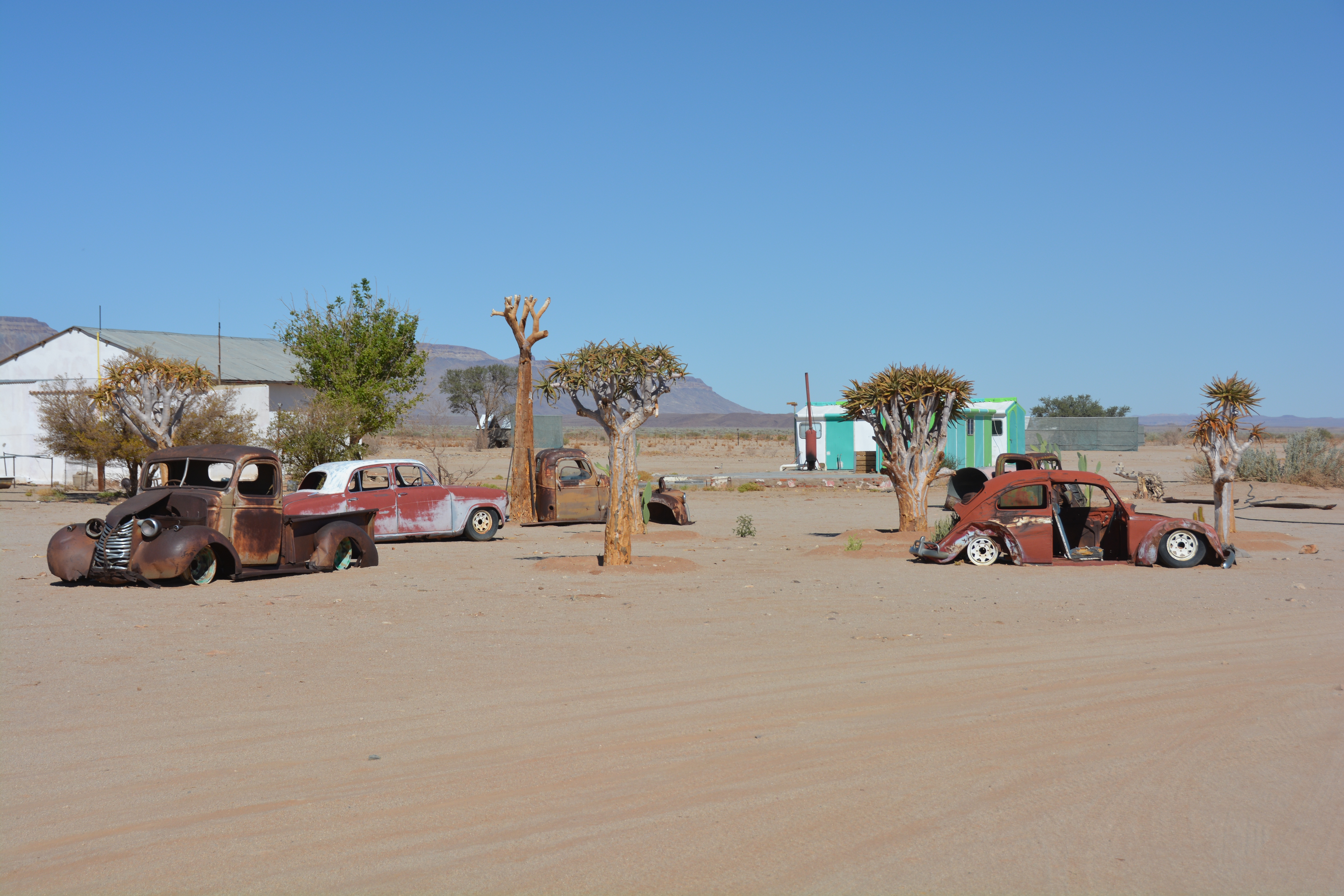 And after more magnificent desert scenes and nerve-rattling washboards we hit the aptly named town, if you can call it that, of Solitaire. In the middle of this nothingness you drive through a gate and the town consists of petrol station, bakery, little supply shop and a very important (and busy) tyre repair shop. That’s it.