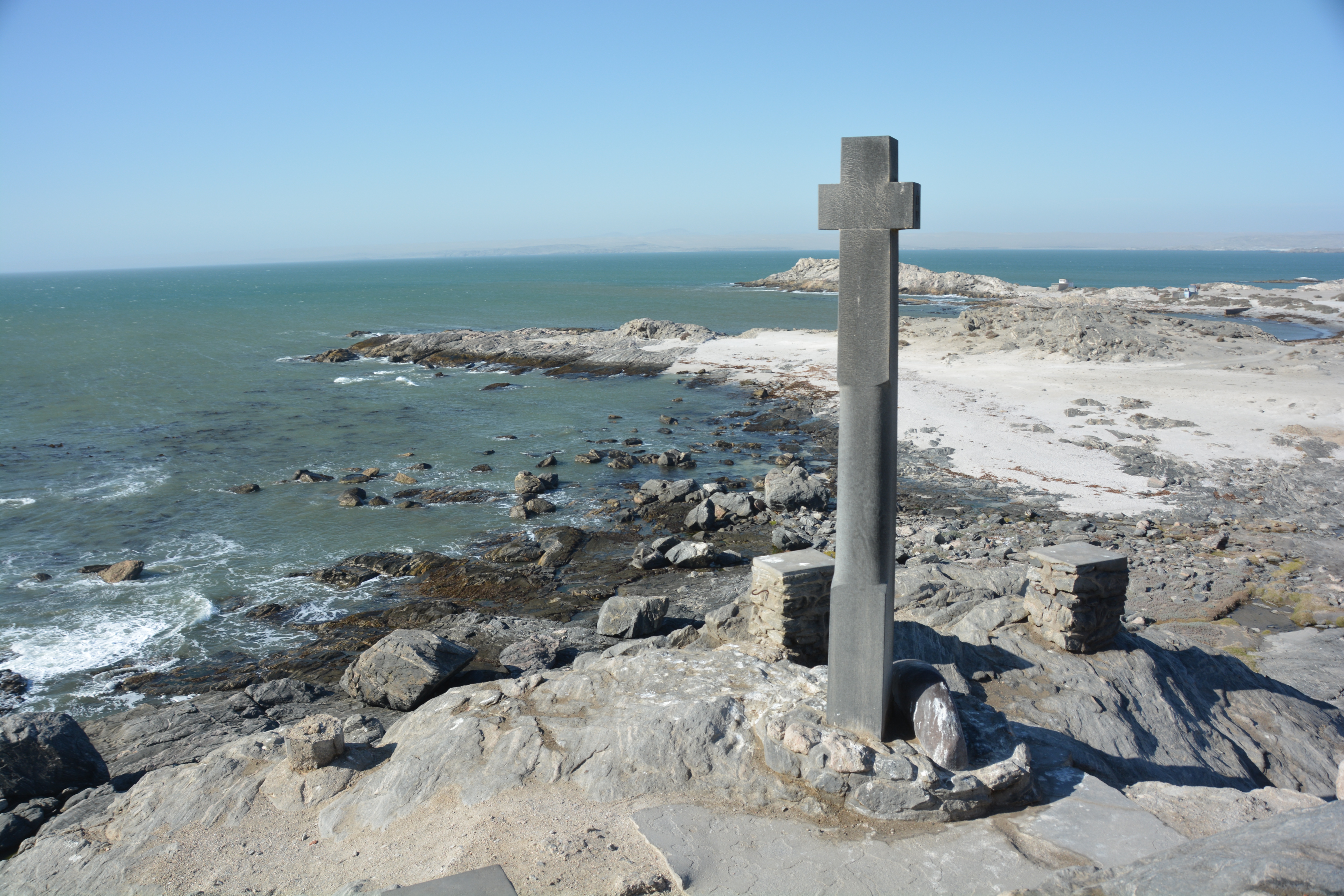 We explored the town a bit but then headed out on a dirt track that should have been called Moonscape Drive to the nearby Luderitz Penninsula which features a replica of a cross that Portuguese explorer Bartolomeu Diaz erected as the first European on this coast in 1498. The wind was howling like a Scottish golf course but we found a little shelter behind some rocks on the coast south of the old lighthouse and hunkered down for the cold and windy night.