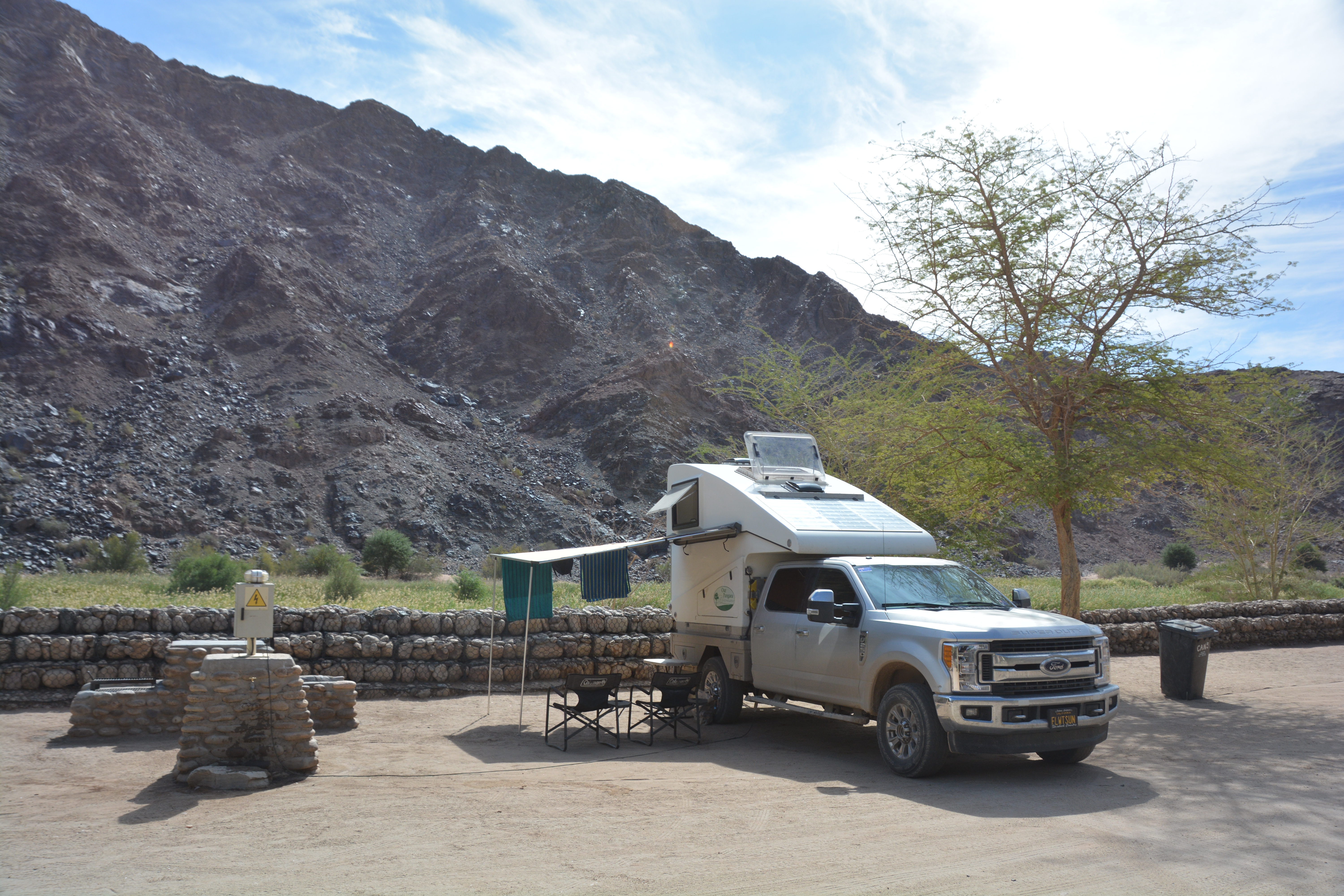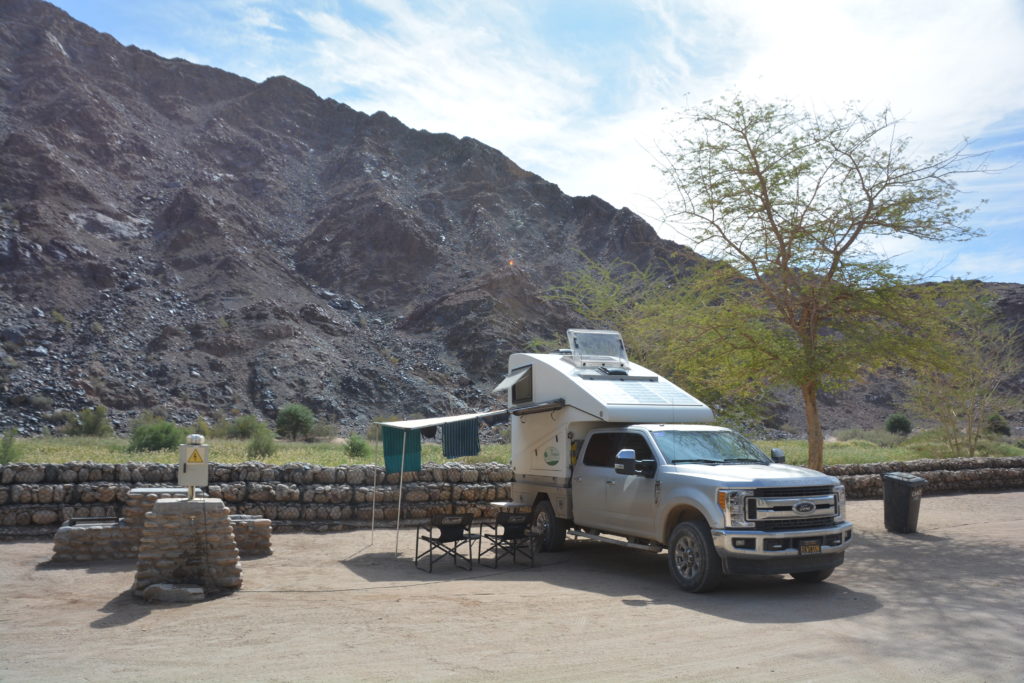 We followed the winding dirt road up and down and through the red rock mountains until we popped out at the hot springs at a place called Ai Ais which is in the…wait for it…Ai Ais National Park. It was Easter weekend but they had room for us to camp and we set up on the banks of the Fish River after a relaxing swim in the warm spring waters of the huge swimming pool. The afternoon was lazy and relaxed, taking in the dramatic rock walls of the river canyon, talking to many fellow campers about Tramp – as always, and patting ourselves on the back for finding a way to extend our time in Namibia by one more night.