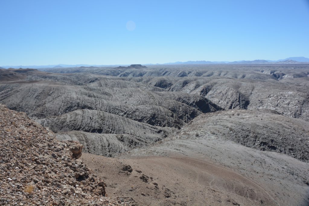 The desert changes with the time of day, the light rising over its vast distances, perhaps a few trees struggling in a dry creek bed, distant mountains showing different shades of red, yellow and grey. And then there’s the road, wide and dusty, sometimes smooth as silk, sometimes sandy and slippery, other times bone-jarring washboards that loosen your fillings.