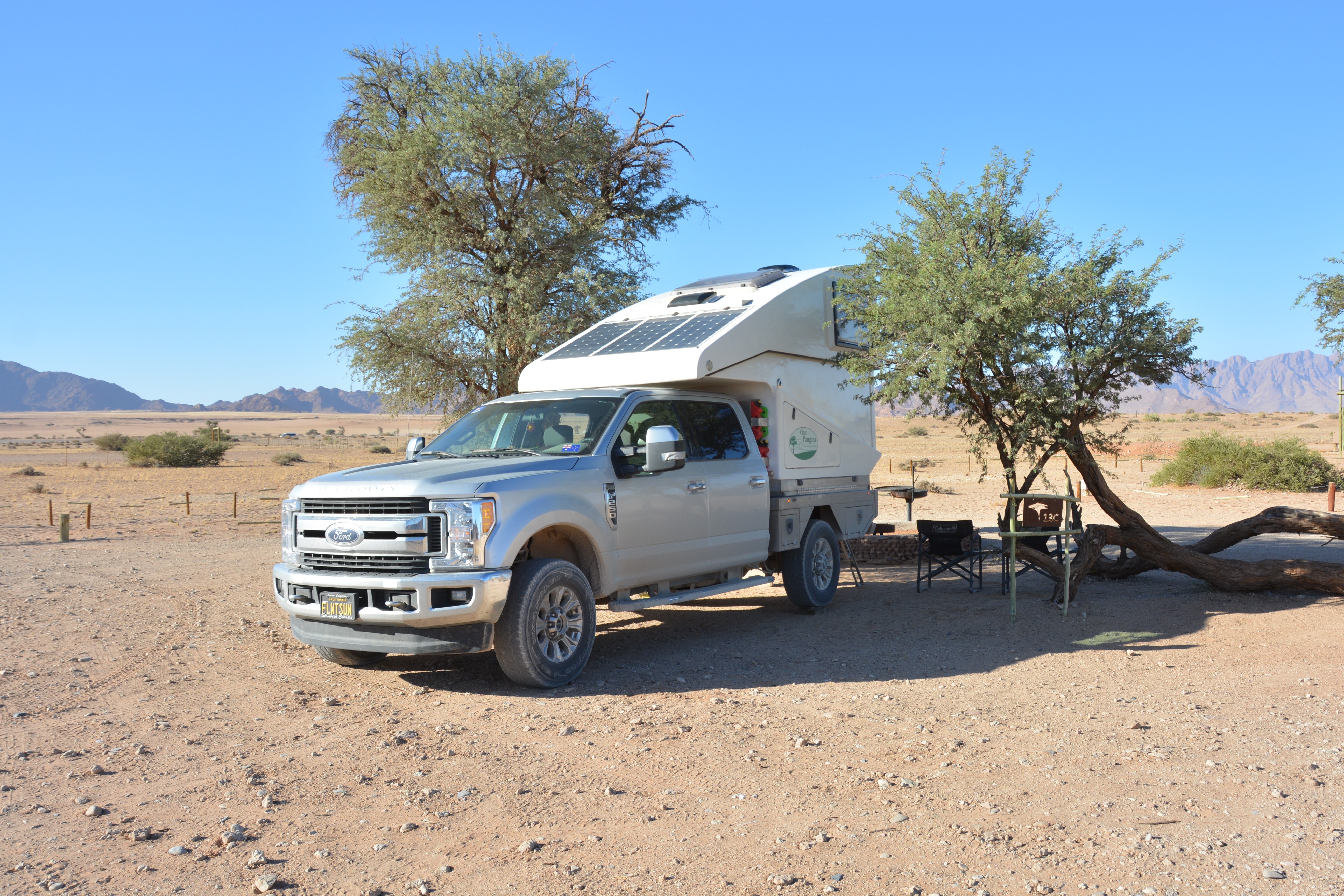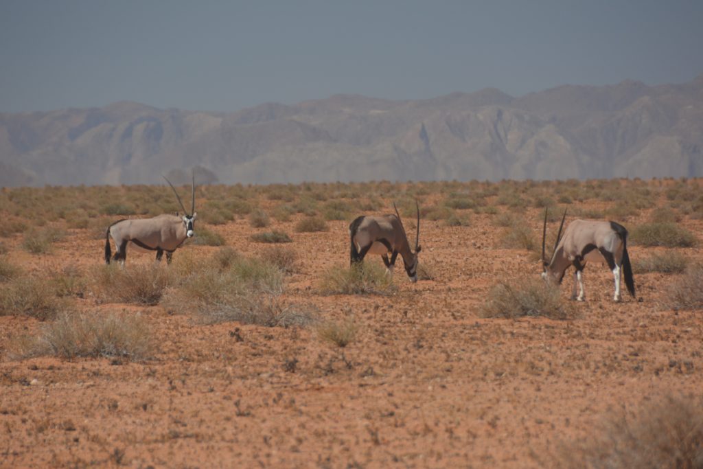 But the desert keeps on giving. We continued south, Tramp finding the sand-based tracks much more friendly than the gravel-based tracks, the stark lunar landscape with its vast distances and jagged rocky mountain perimeters were just fantastic. We spotted two families of bat-eared foxes, a rarity, and the usual suspects like gemsboks, ostriches and jackals. You’ve got to be tough to live out here.