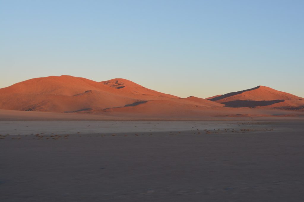 They say the Namib Desert, which stretches over the vast plains and mountains of central Namibia, is the oldest desert in the world. It certainly dominates the geography of the country and anyone moving from north to south or visa versa has to pass through it in one way or another. We didn’t so much pass through it as dive into it, starting in Swakopmund, down into Walvis Bay and then across the endless barren heart of the desert. And we were only getting started.