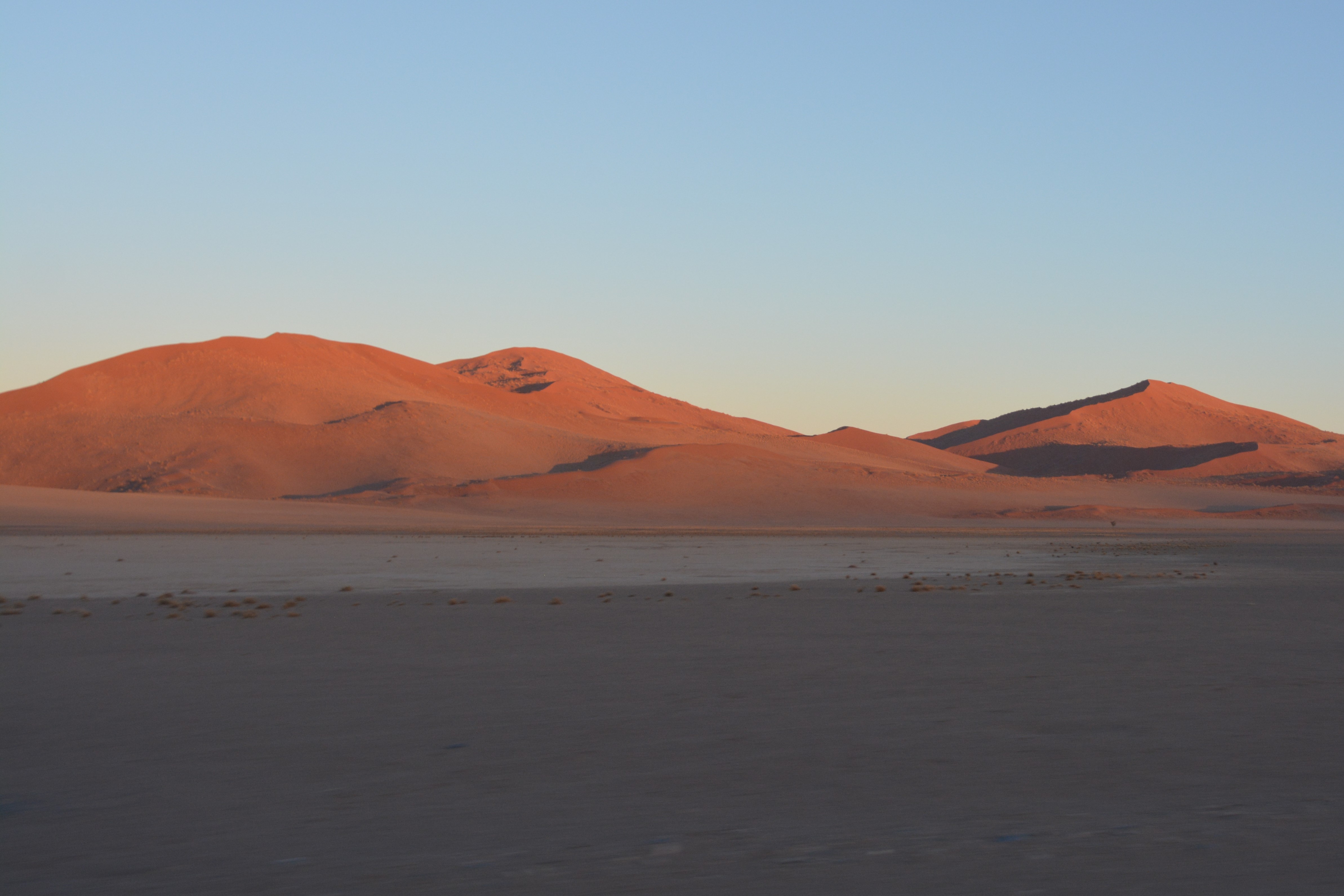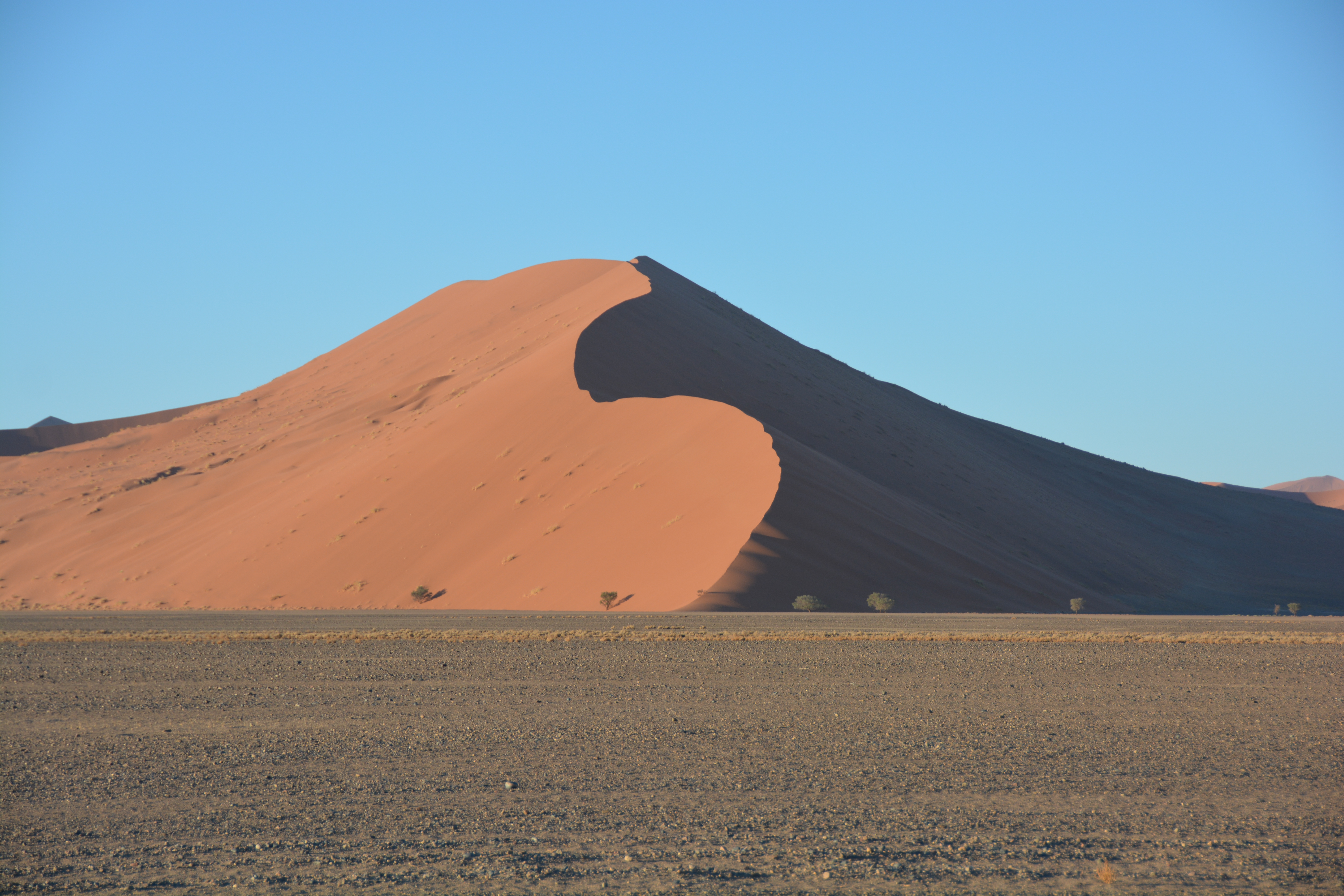 The signature piece of any great desert is sand dunes, the taller the better. And in this regard the Namib is king. West of the outpost of Sesriem the desert stretches all the way to the ocean and is filled with mountains of beautiful red sand dunes. We entered the park again at 7am, just before dawn, and drove 65 kilometres past artistically perfect sand dunes coming alive in their bright colours as the sun rose, and after battling some seriously deep and soft sand we parked at the end of the road at what is called Sossusvlei. From here beautifully carved sand dunes rose all around us.