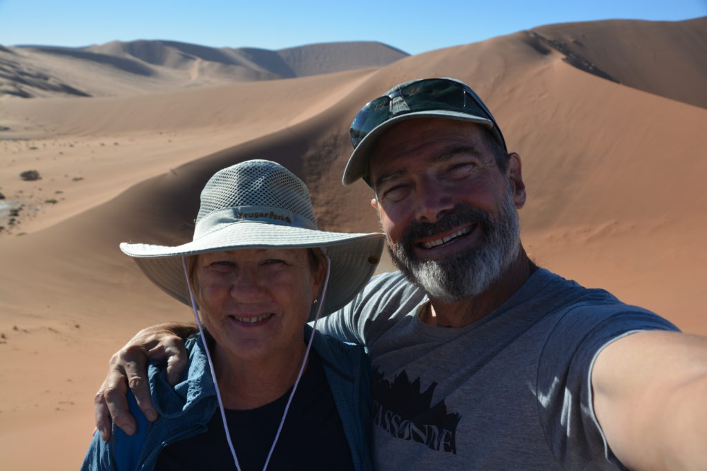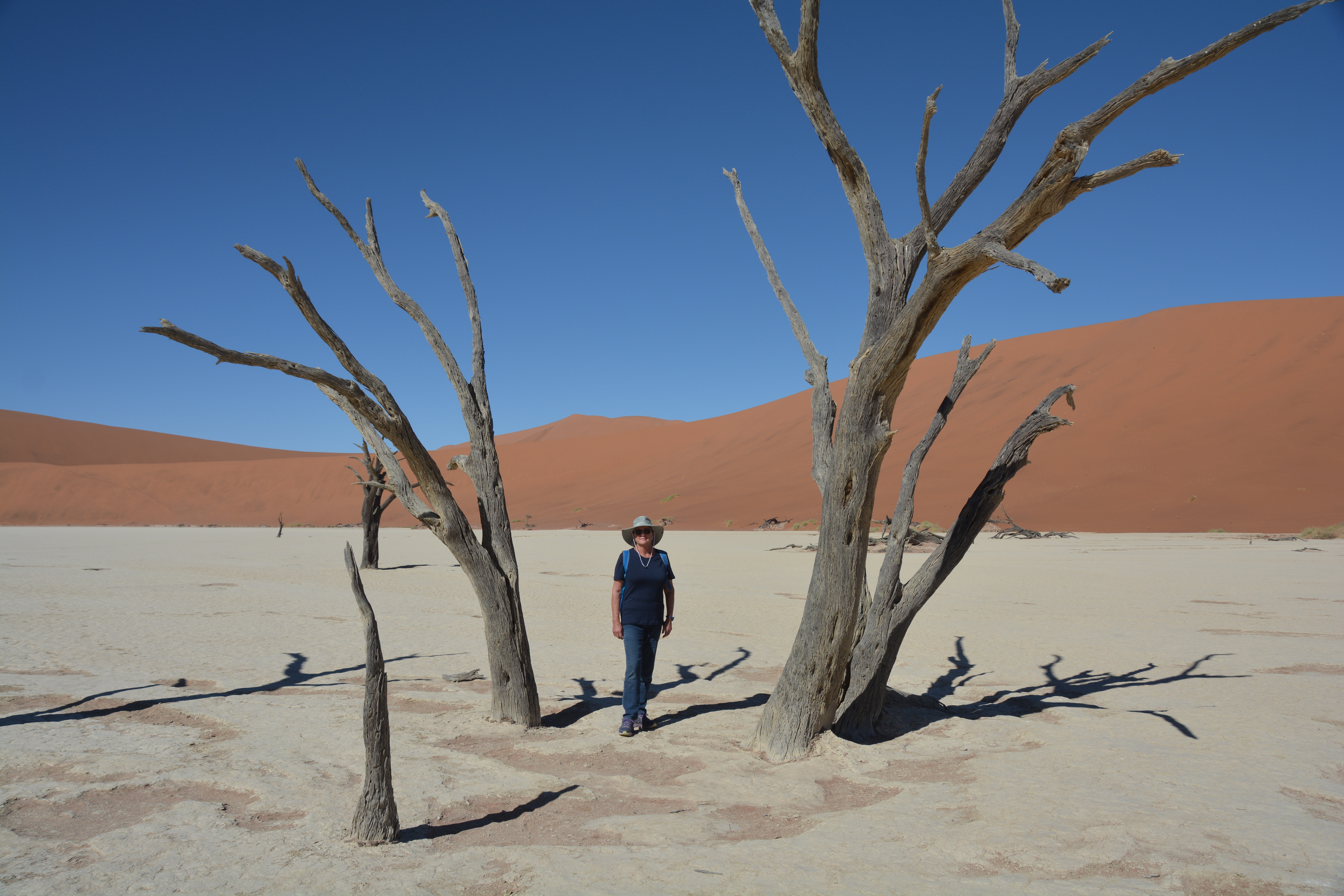 Julie and I walked amongst these ancient dead acacia trees, some said to be 600 to 700 years old, featured on virtually every travel brochure or website of Namibia. These statues tell a story of how conditions have changed that allowed them once to prosper but now to be frozen in time. Very cool.