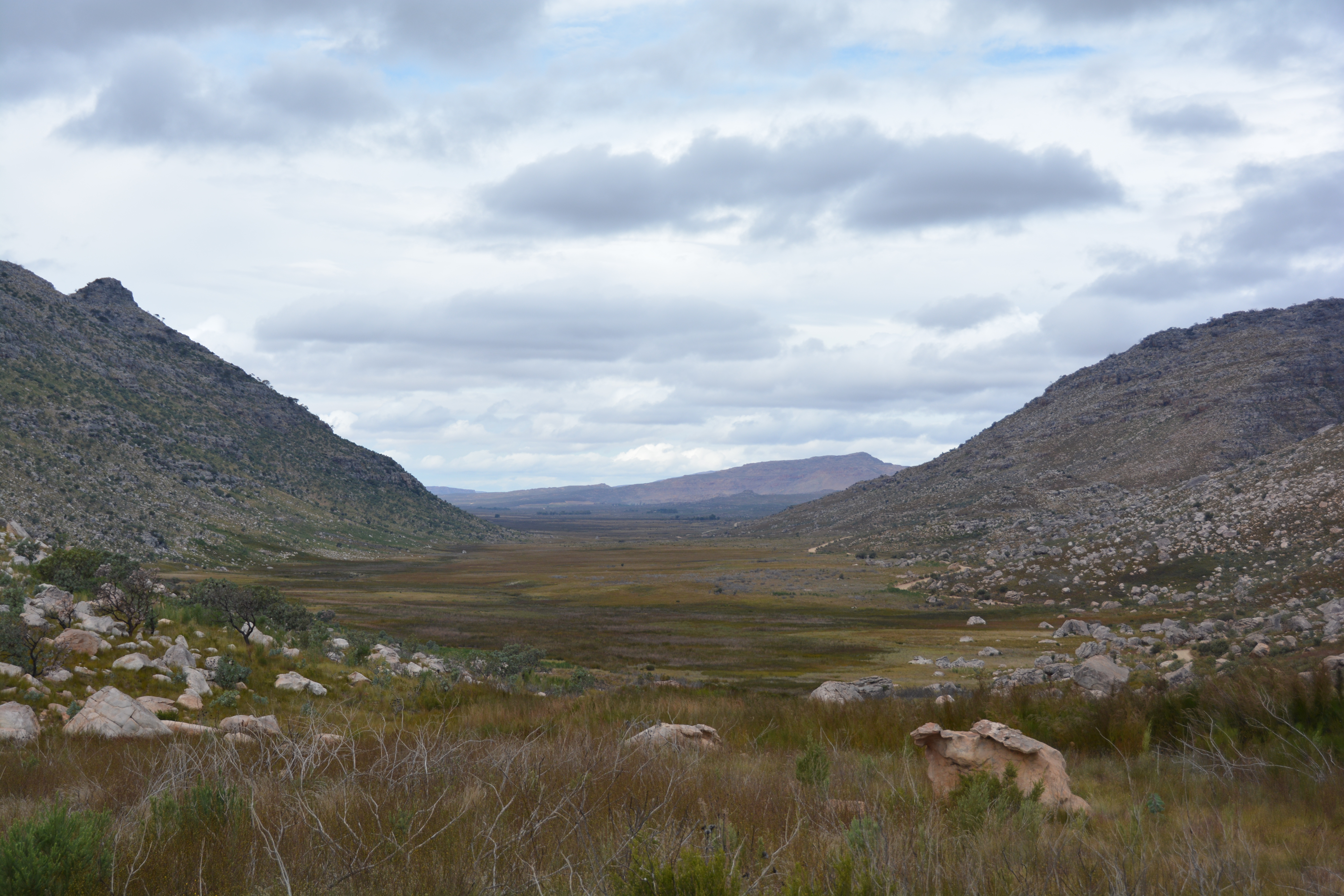 The Cederberg Wilderness Area is one such place. We drove along the Oliphant River where an extensive irrigation and canal system had turned the desert into a rich land of healthy vineyards and green orchards (a surprise in itself!) and into the wilderness area at the base of a huge rocky mountain range that had been growing as we drove south.
