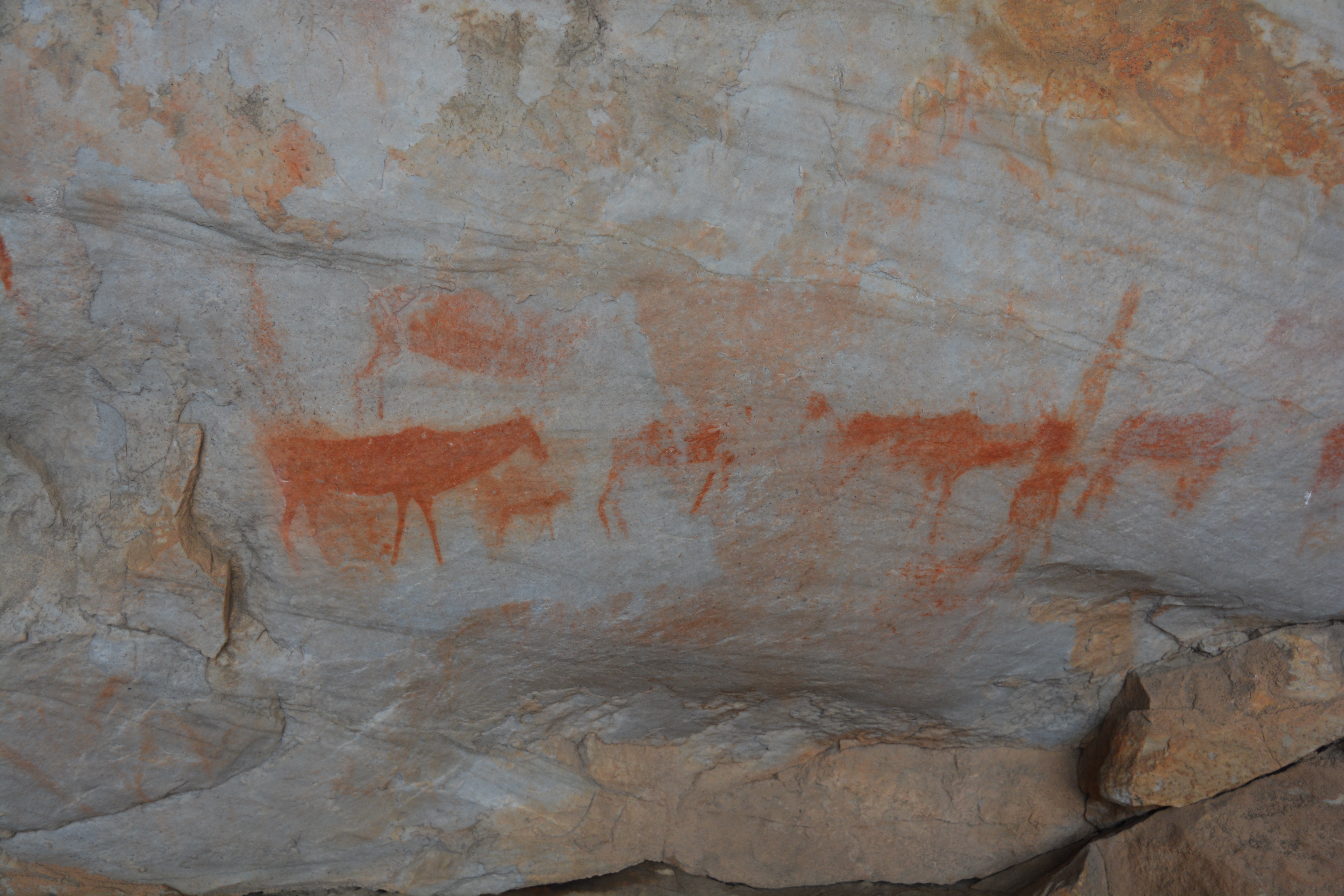 The next day we took a tip from the owners of the property and with a special permit drove along a dirt track until we came to a placed called Truitjieskraal (these Afrikaner names are killers). Here we found another range of exaggerated rock formations, sandstone carved by the wind and water over the millennia, now forming strange, gravity-defying and even humorous formations. We walked amongst these natural creations and also took in some amazing San rock art which is thousands of years old.