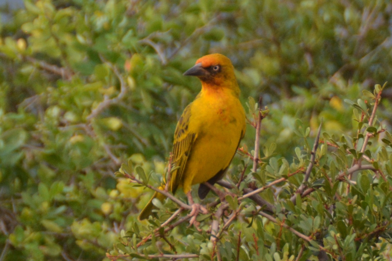 We’ve lost track of the name of this beautiful bird but it was probably the yellow breasted orange headed South African thingo