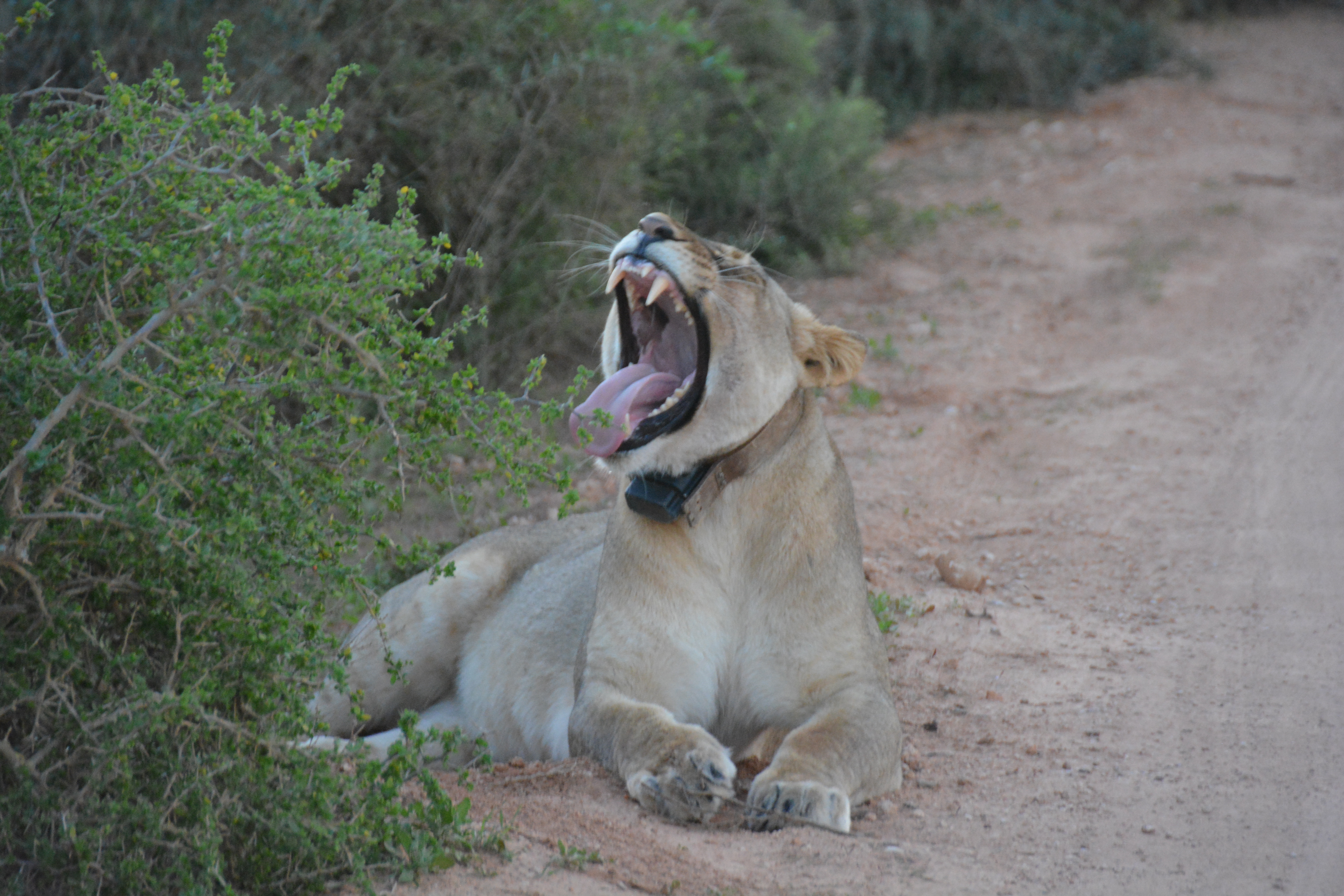 Life on top of the food chain is sometimes a big yawn (but at least my mate the ranger has given me a nice necklace!)