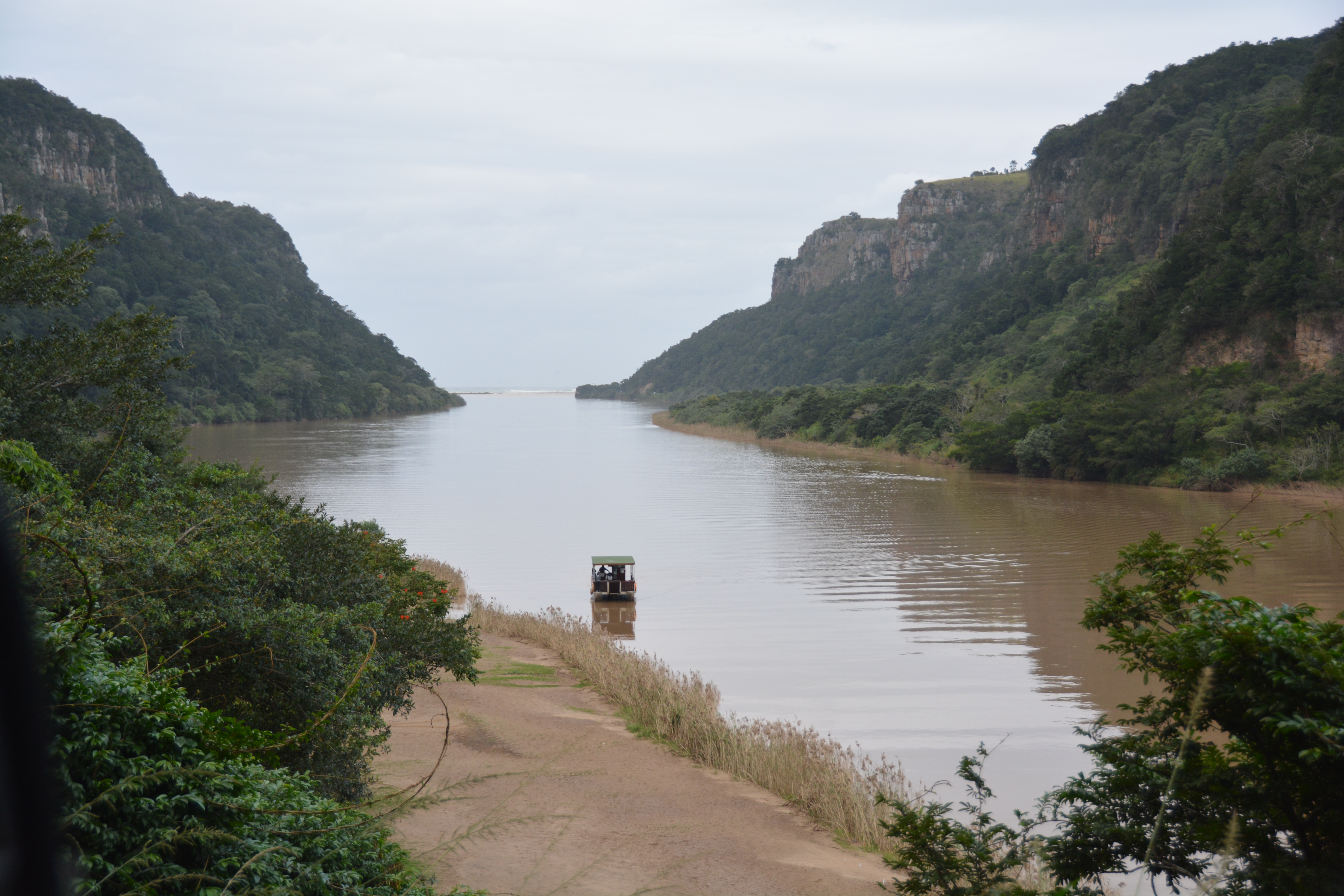 The river cut a deep line through the mountains before emptying into the Indian Ocean where the town of Port St. John is located