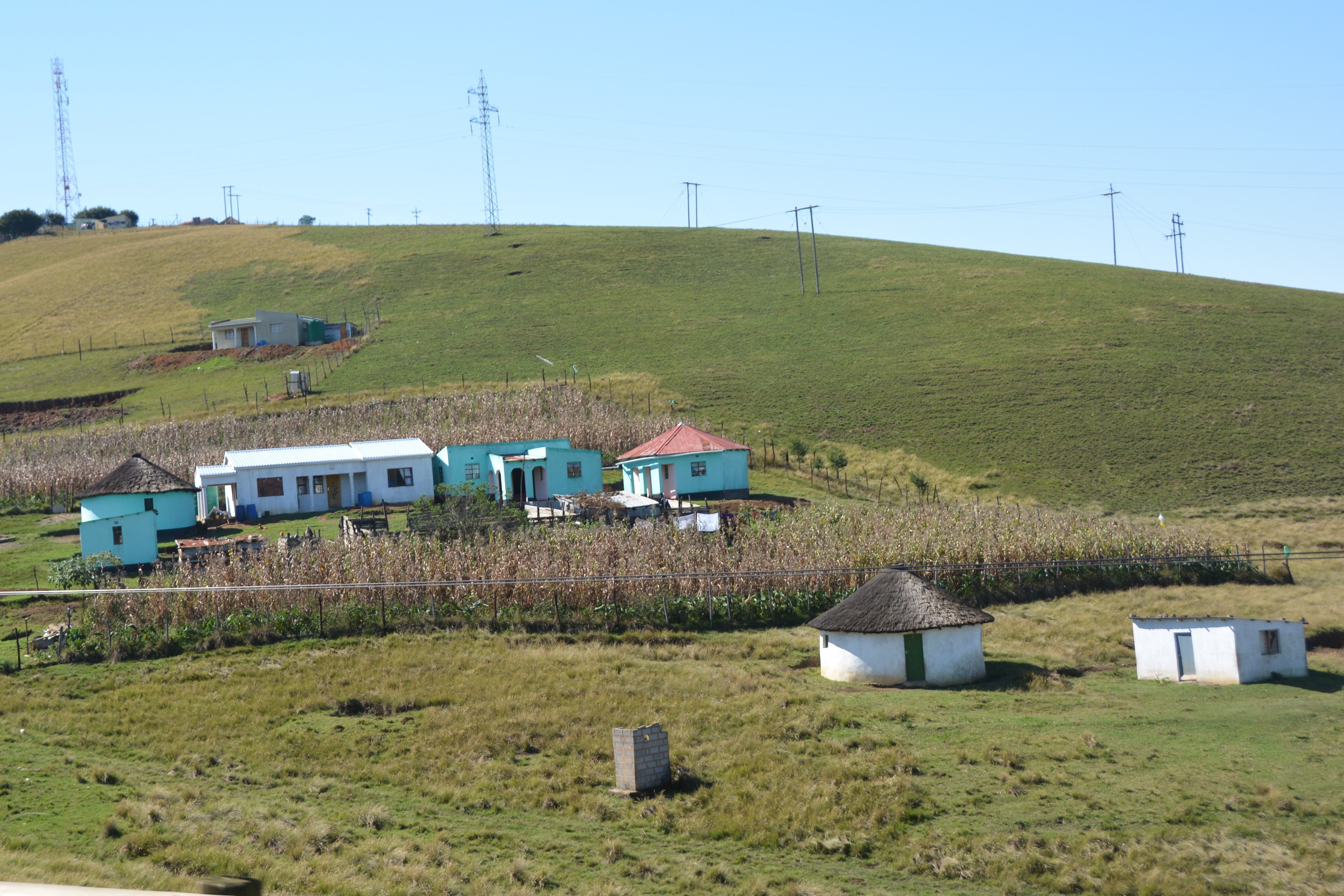 The next day we headed inland for a while, taking the road northward as it followed the ridge lines of these rolling mountains covered in green grasses and sprinkled with colourfully painted homes that each seemed to have a little plot of land for corn or goats or both. It was simple living, that’s for sure, but as we’ve seen across most of Africa the homes are neat and tidy, there is almost no litter to be seen, the school kids are all immaculately dressed in their uniforms and the strong impression we got is that these people live with pride of person and place. It’s a tribute to these people because from an economic and prosperity point of view they are doing it very tough.