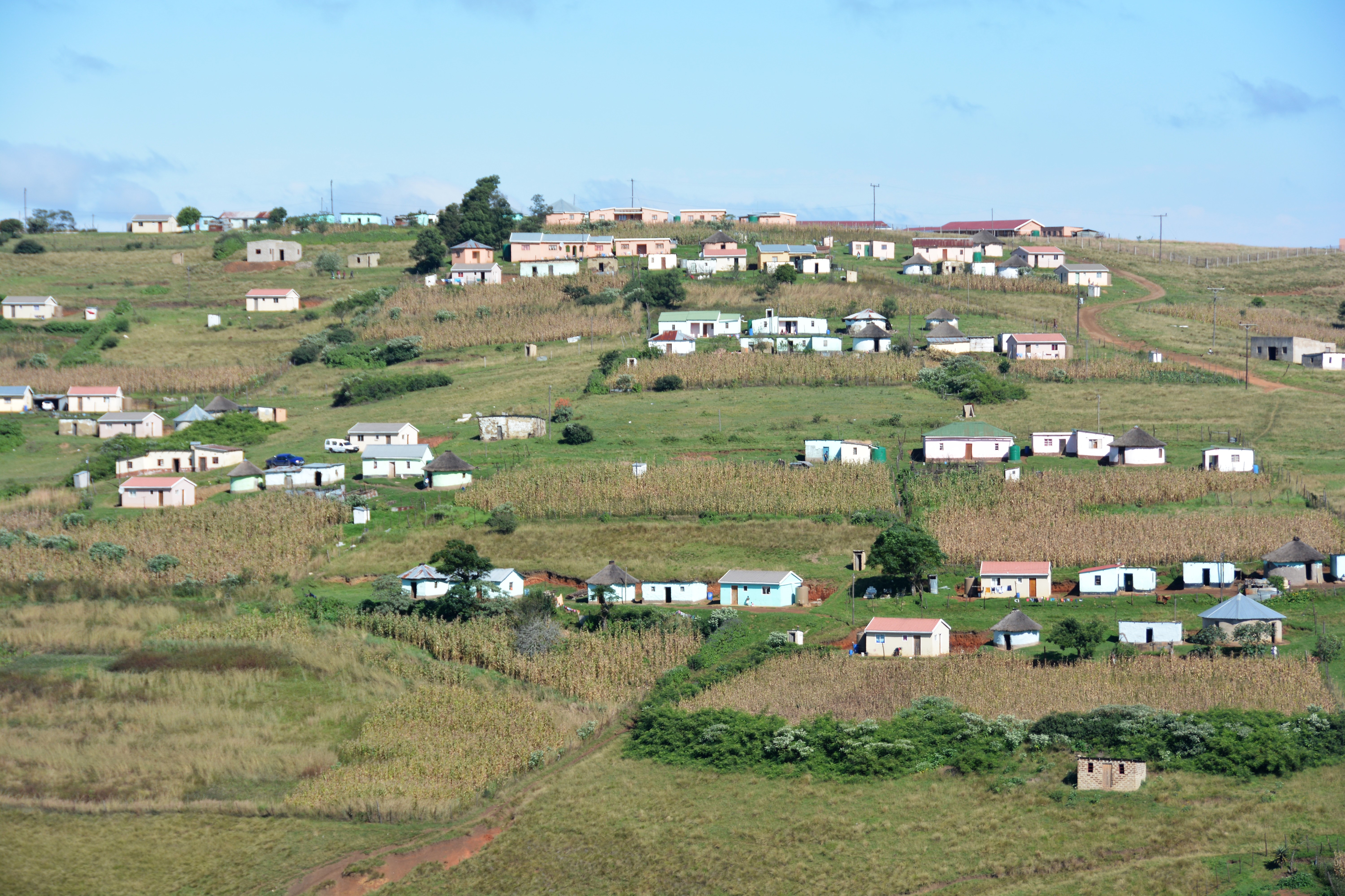 A typical countryside scene where modest houses are spaced apart on the hillsides to allow small crops to grow and animals to roam
