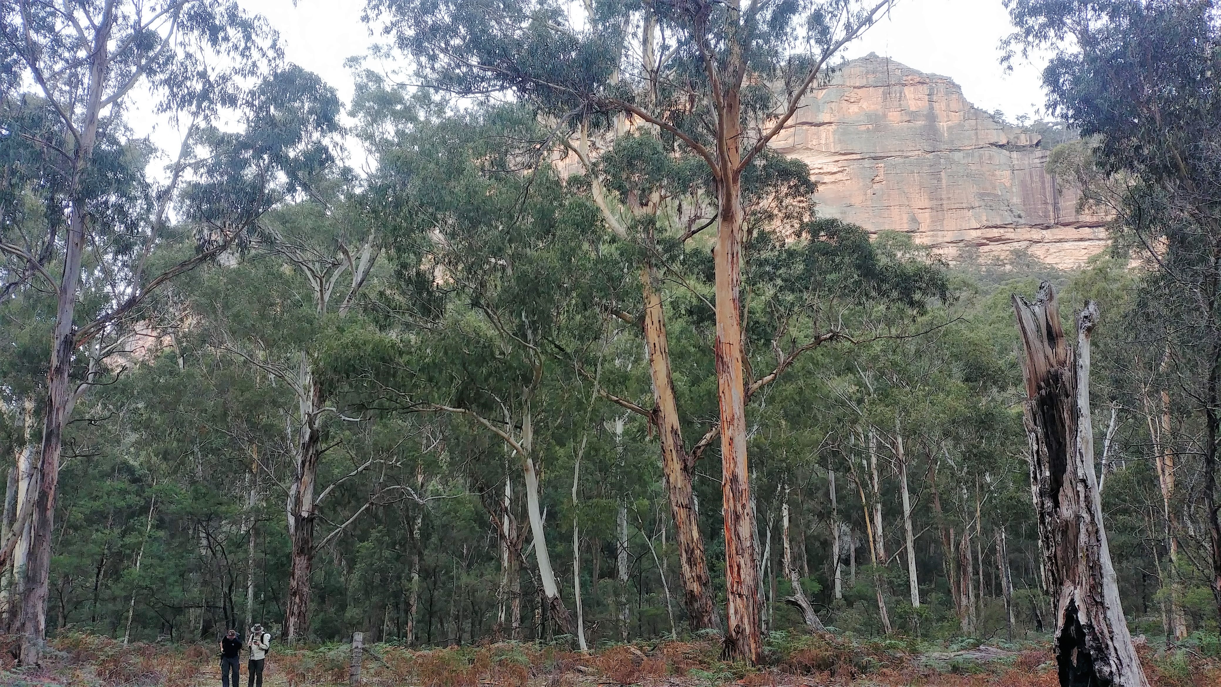 Its easy to feel small amongst the grandeur of the bush, including these huge trees and the towering cliffs behind us