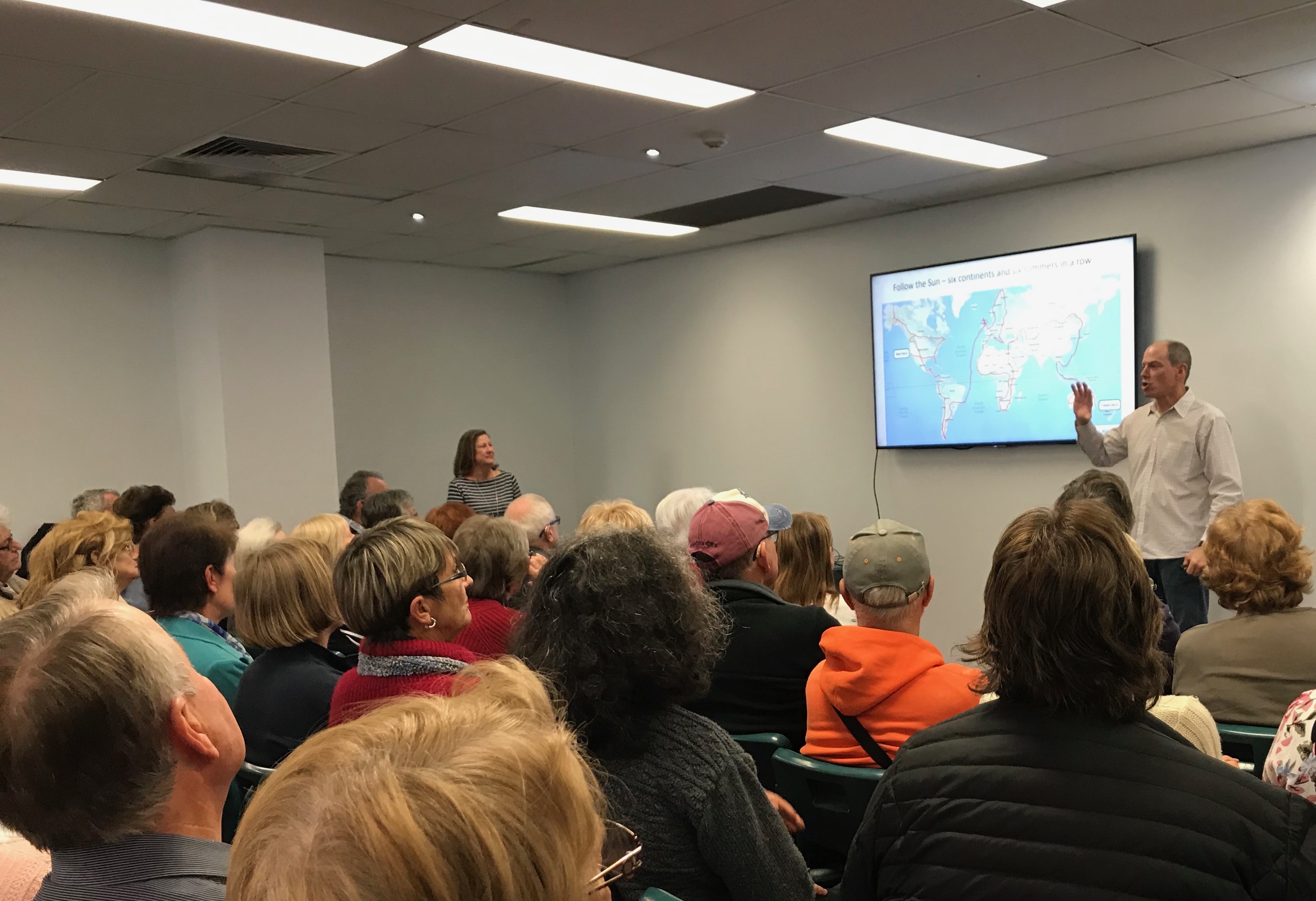 Through Julie’s sister we also had the chance to do a presentation at the local library about our Follow the Sun travels and were able to share some of our stories and adventures of 543 days on the road with a curious audience.