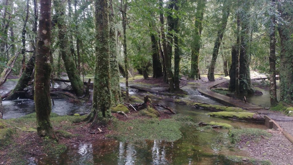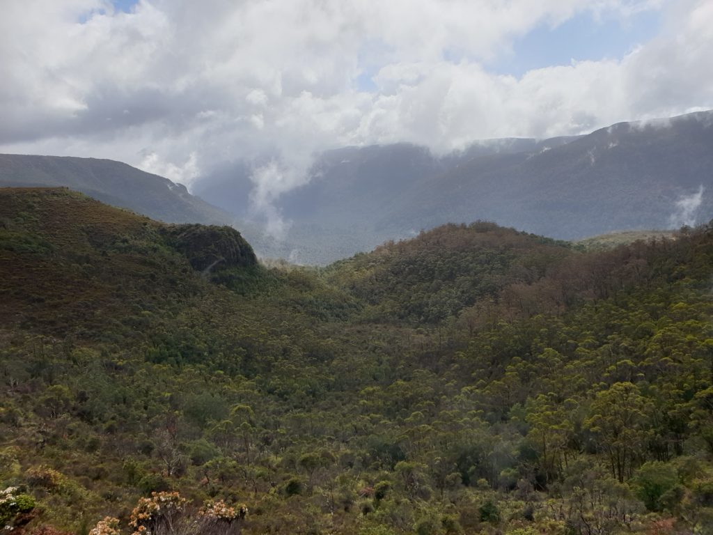 We stopped at a lookout for good views of the valley formed by the River Forth and then trudged through the pine forests down to Frog Flats where we crossed the River Forth itself. This part of the walk exposed us to more of this very rough track with extensive exposed tree roots, loose rock, running water down the track and of course mud – don’t forget the mud – to carefully negotiate with each step.