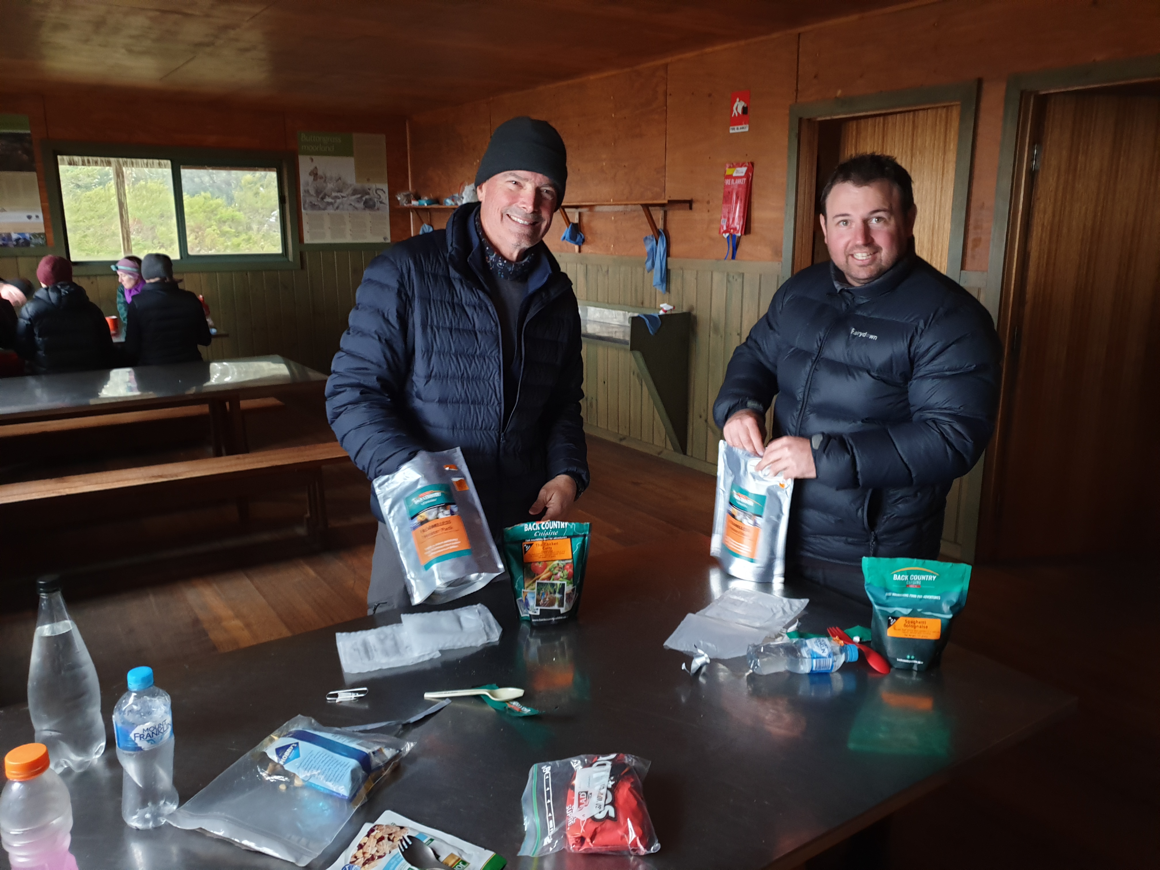 Carl and I using a dubious method of heating our dehydrated meals by adding water into a special bag to create a special chemical reaction – it didn’t work and we ate cold dehydrated food with crunchy bits