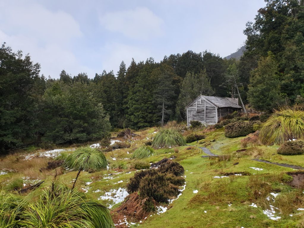 Though it rained and slushy snowed all afternoon the weather wasn’t nearly as bad as we expected but the poor quality of the track made every step a careful negotiation. We took a detour to check out the old Pelion Hut which was built for those intrepid explorers in 1917 and then after 16.8 kilometres of trail slog we pulled into the New Pelion Hut where we dried off, warmed up, enjoyed another cold dinner and slept like babies while it snowed outside.