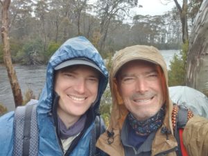 Amongst us was a father and daughter from western Sydney, two girls who were cousins from Brisbane (one of which had slipped off the boardwalk and fallen over her head into the icy water, pack and all) and a young couple from Sydney’s northern beaches of Manly, Rick and Gabby, who we had seen on and off for a few days and were destined to be with us for the remainder of the trek.