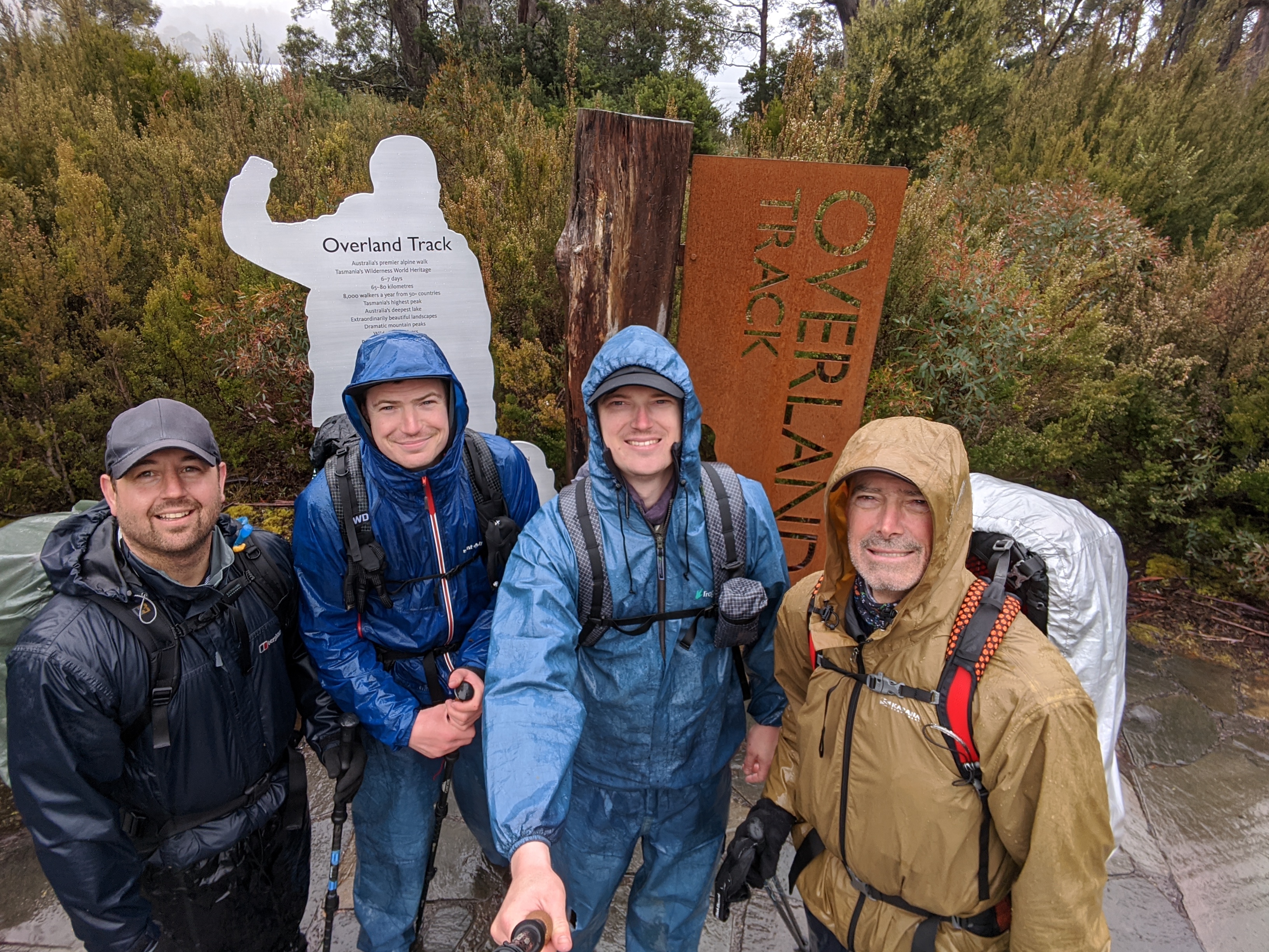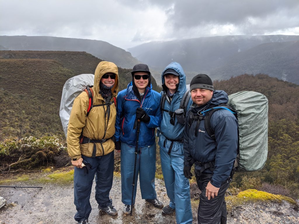 We did it! Carl, Zach, Will and I mark the completion of the Overland Track…wearing the exact same clothes we started with six days ago