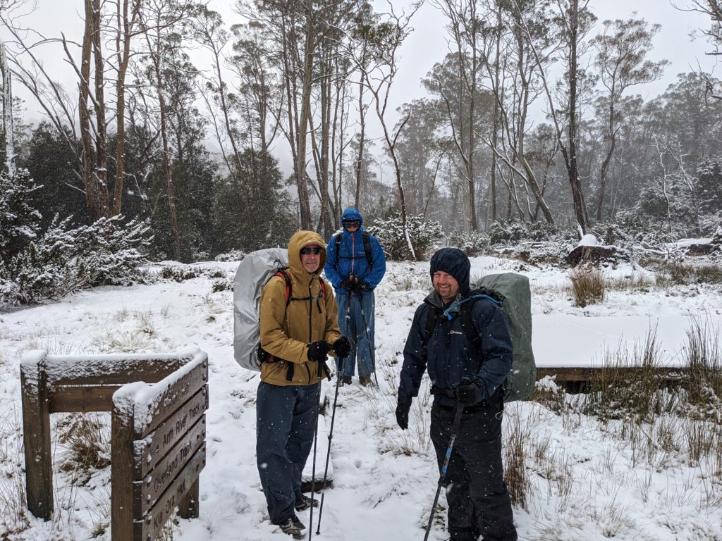 While we slept warm and dry in Windermere Hut on the second night of our adventure there was rain and snow falling outside all night. We had been told that today would be the worst weather day of the week but we were battle-hardened and ready to take on all the elements no matter what is thrown at us. And we had adopted a catchcry that summed up our approach to the Overland Track – Embrace the weather! And so we did.