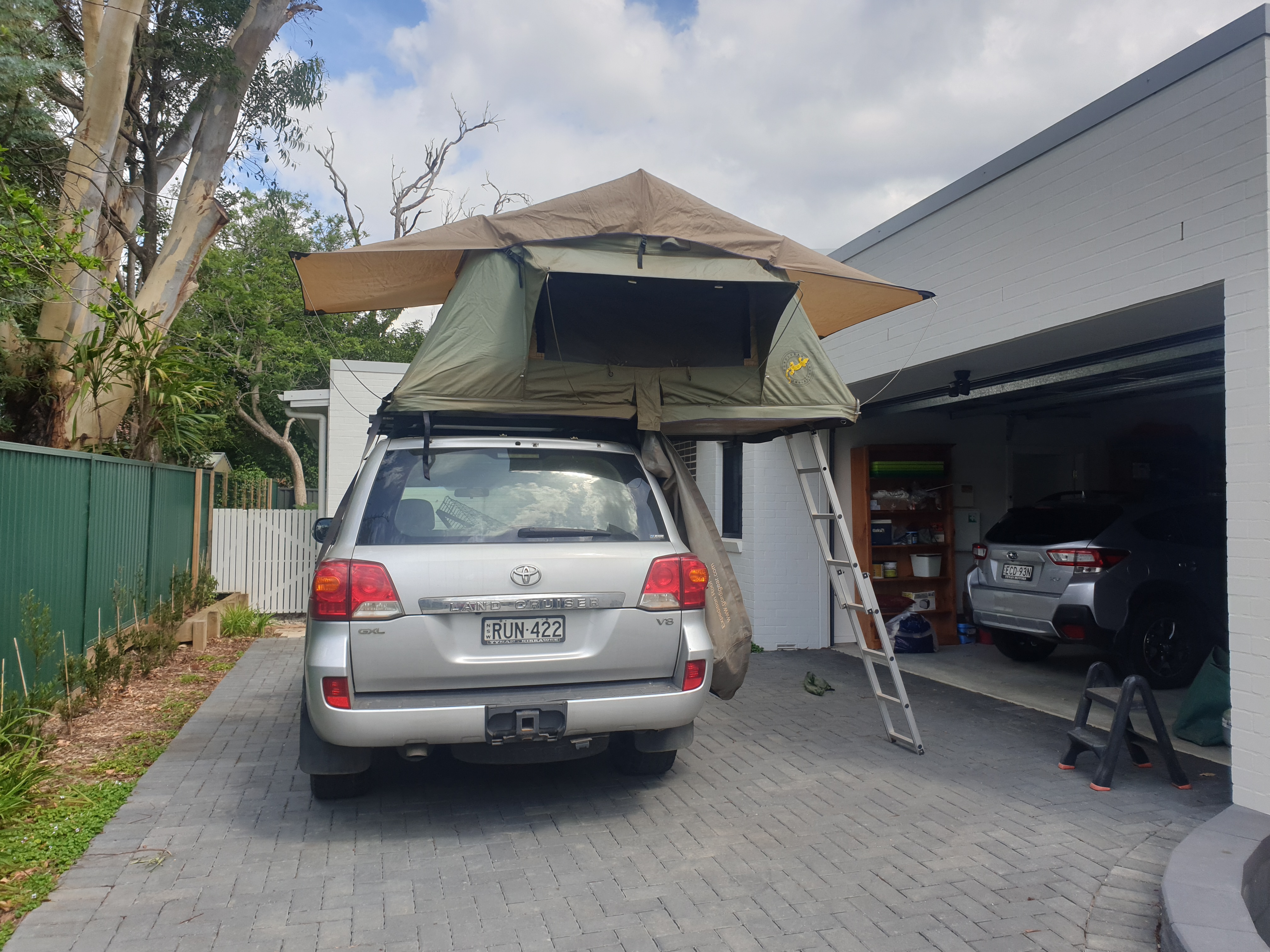 The roof top tent was so keen to start our road trip it set itself up in our driveway before we left