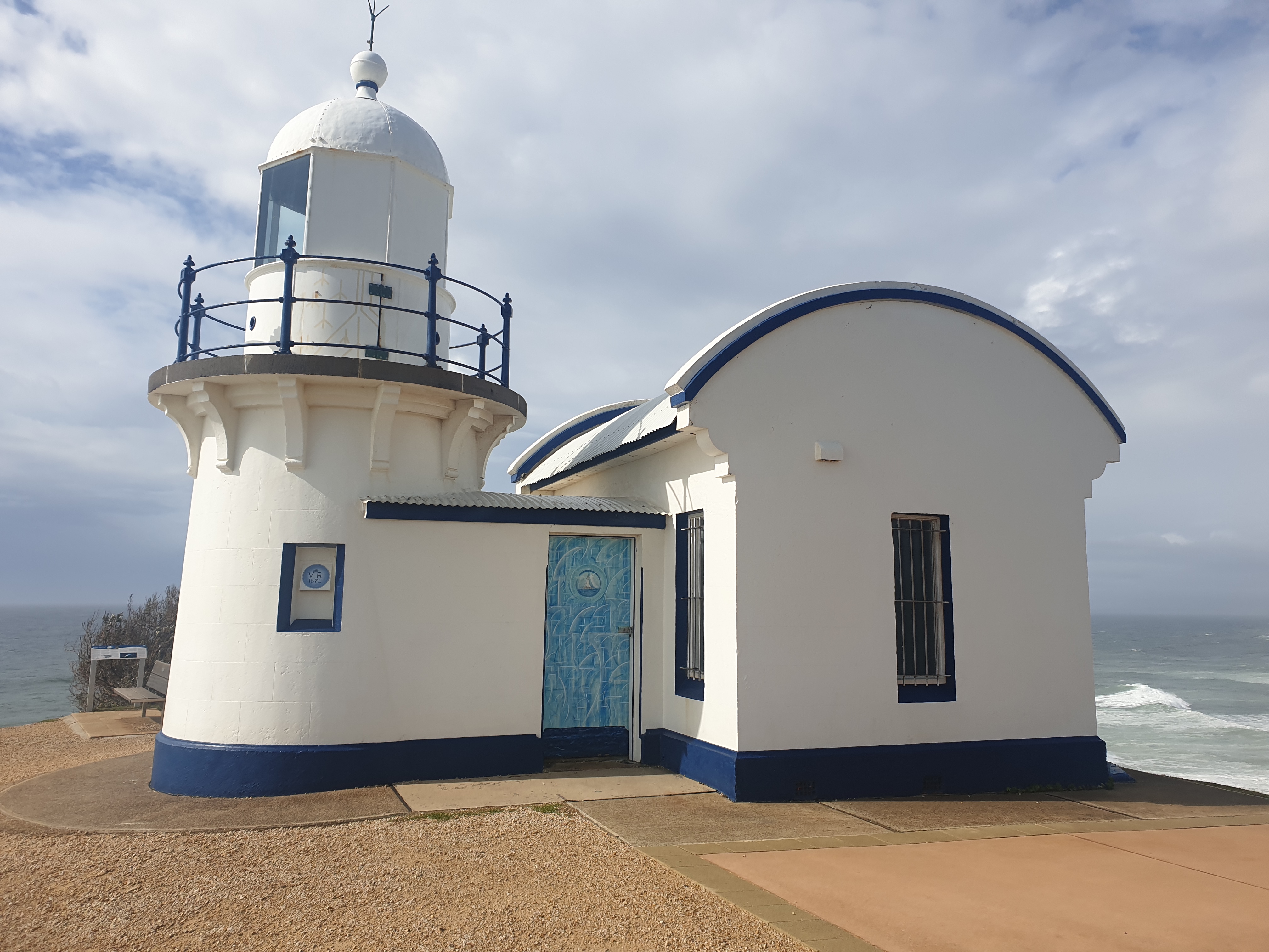 The picturesque little lighthouse at Tacking Point near Port Macquarie matches the blue and white sky behind it