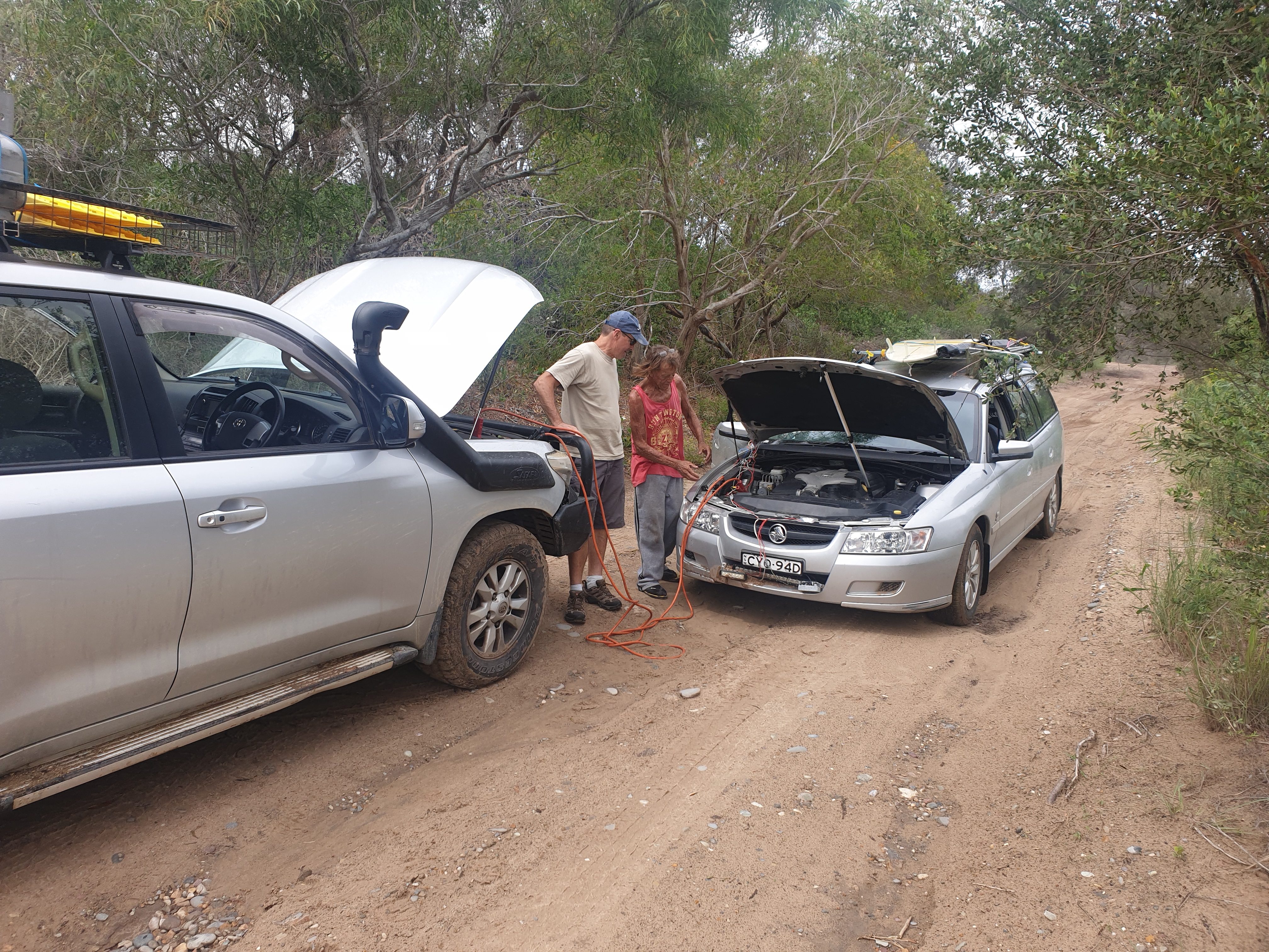 On a slightly rough track in Limeburners Creek National Park we found this eccentric old guy with serious car trouble and jump started him a few times to get him going