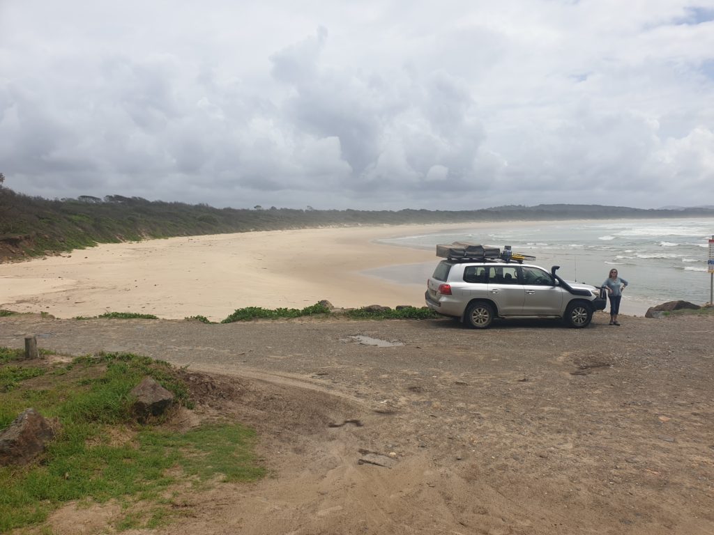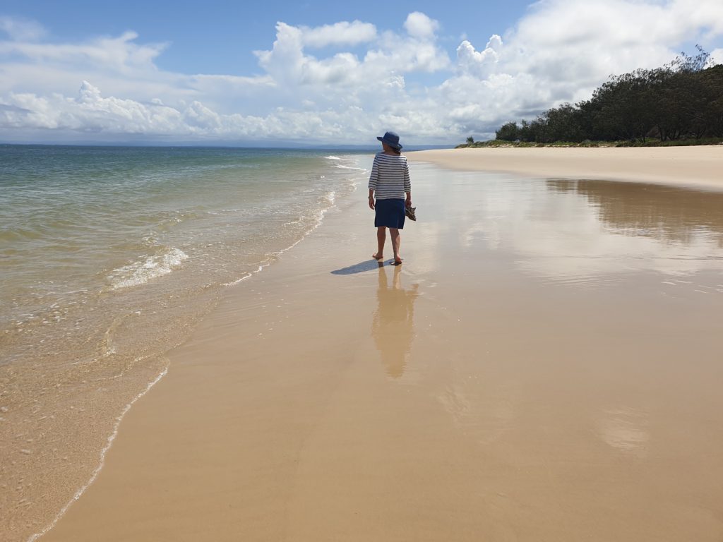 Is that the sun shining through our bedroom curtain? Indeed it was and we headed north again under promising blue skies and warm sun. North of Brisbane we turned east and crossed the bridge onto Bribie Island, once a sleepy sand island off the Queensland coast, now a well established holiday and retirement destination with multiple little towns, a national park making up 80% of the island, and some long beautiful beaches. We spent a beautiful warm afternoon on Woorim Beach, enjoying the clear ocean water and rare sunshine. Another night in our warm and cosy roof top tent.