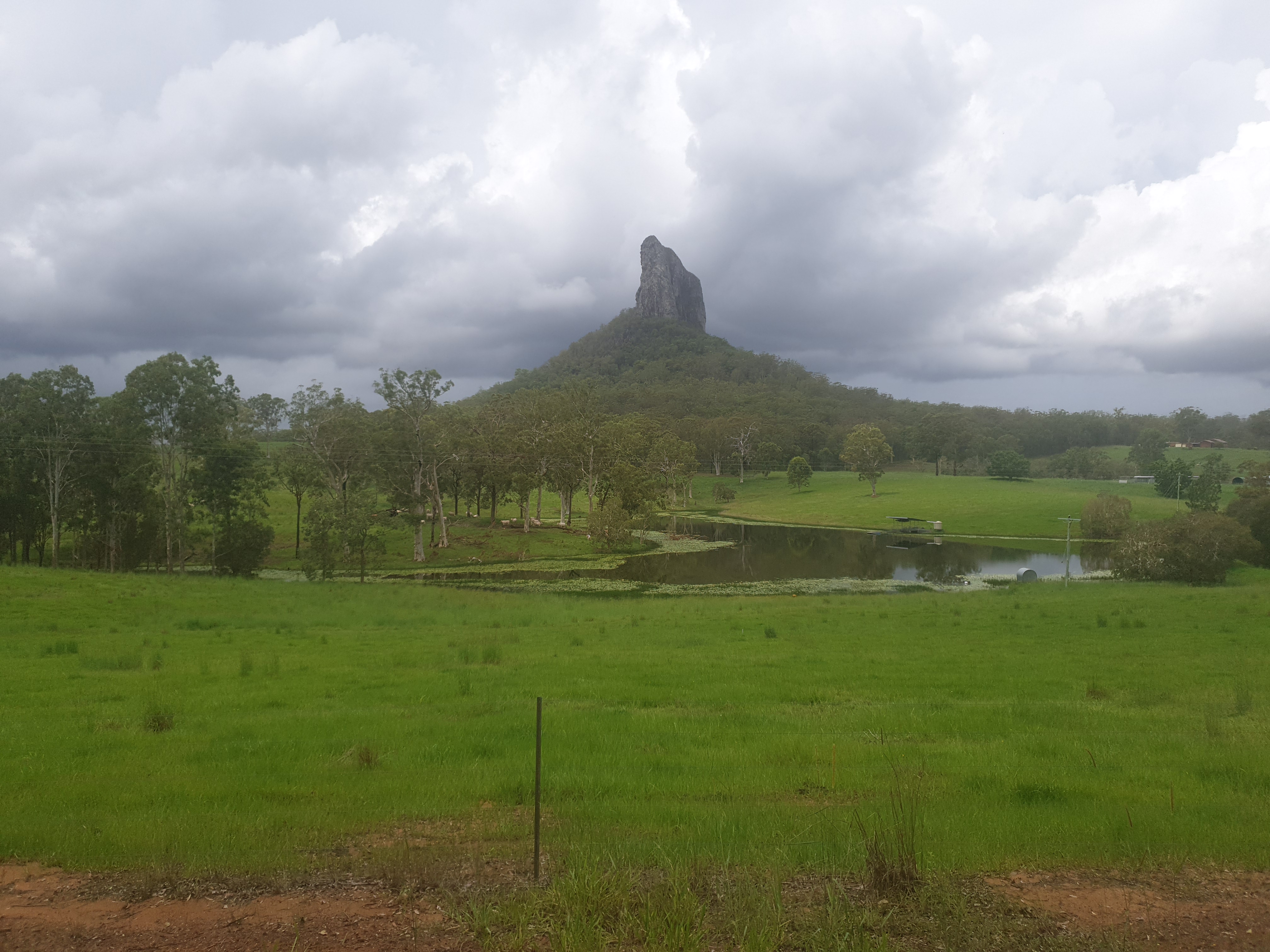 The Glasshouse Mountains are a series of ancient volcanic plugs that scatter the countryside – great fun to drive around them