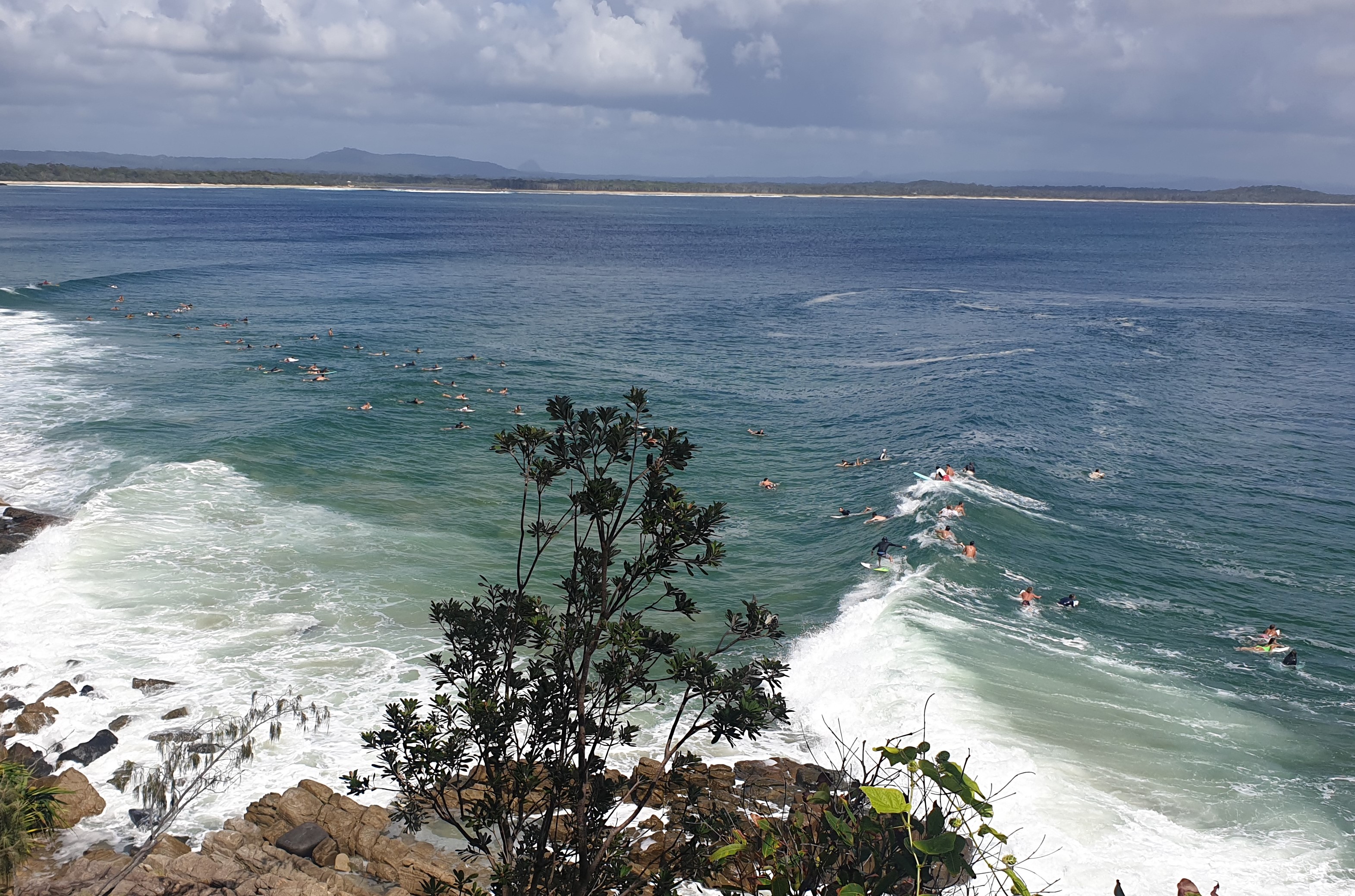 By day Noosa is a serious surfers’ hangout, as evidenced by this crowd of boarders waiting for the next big wave