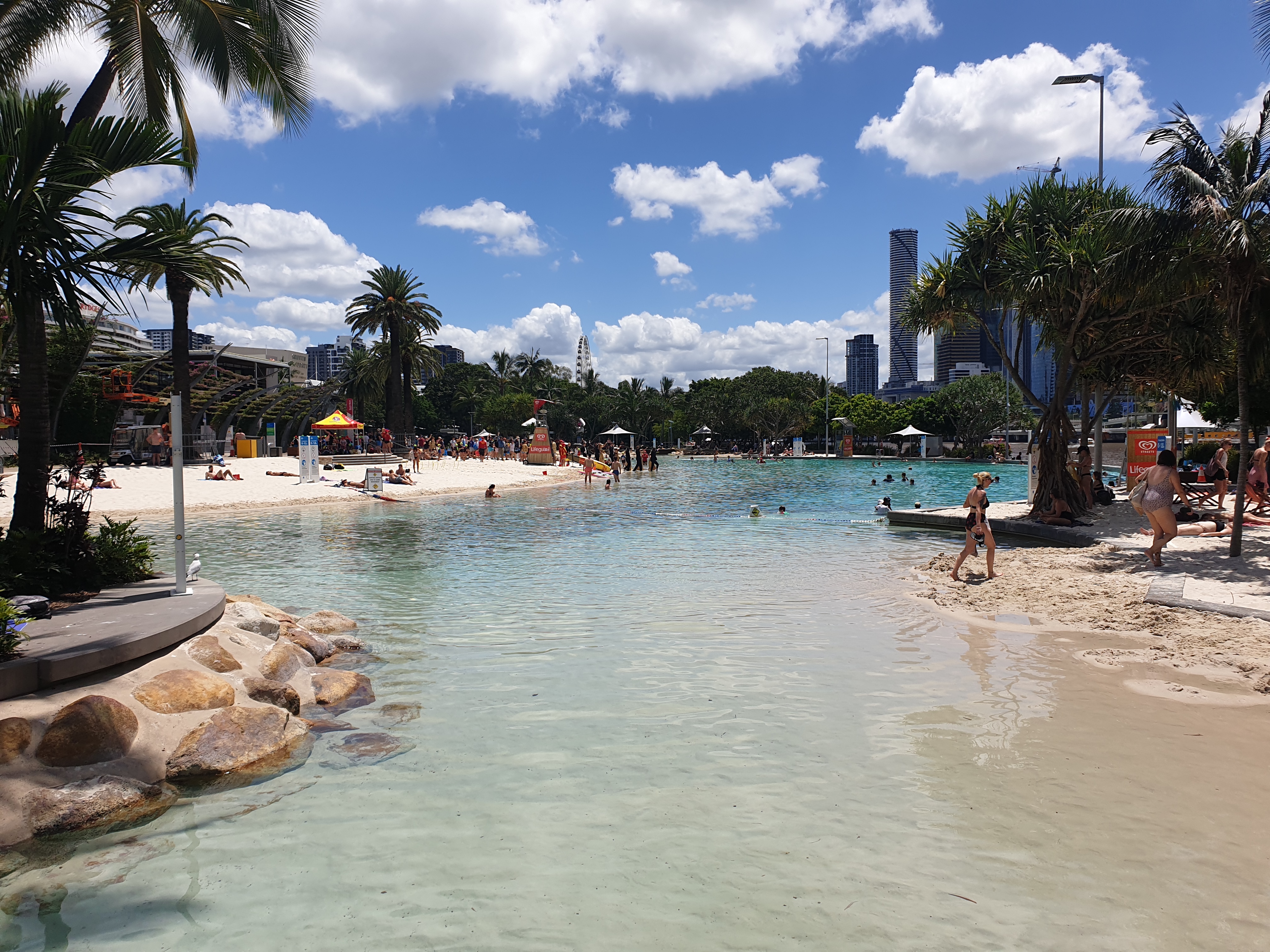 The Southbank district features a string of museums, cafes and this huge artificial beach swimming pool, great for kids and families