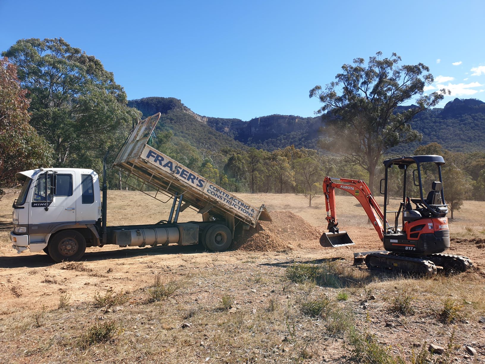 Let the fun begin! The first step was to build the level base for our little home – and it took 35 truck loads from a nearby location to complete the job