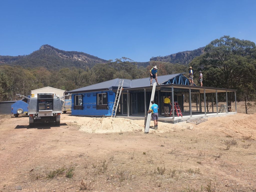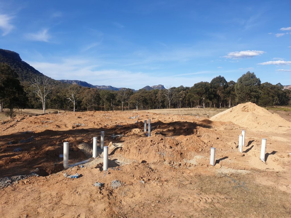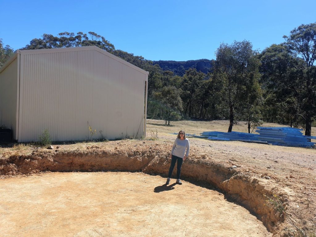 The story starts in 2015, five years ago now, when we began to investigate through the local Lithgow Council what was required to build a home in the isolated Wolgan Valley. We knew before we started that due to its location our home would be completely off the grid and we would not be able to access any services. We would have to catch rain water from the roofs of our house and shed and store it in a rainwater tank. We would need to install solar panels and large batteries to provide our power. We would rely on large bottles of LPG to power our hot water heater and stove. And we would need a gravity-fed underground septic system to deal with our waste.