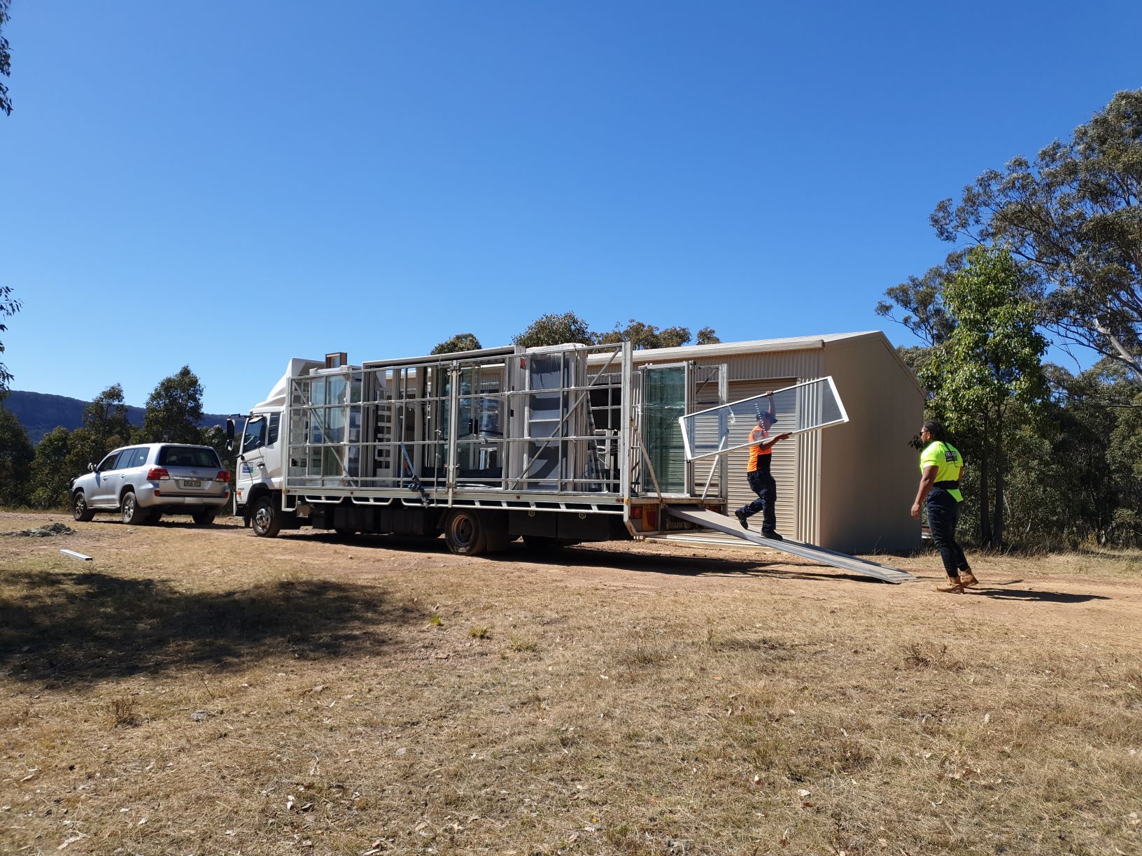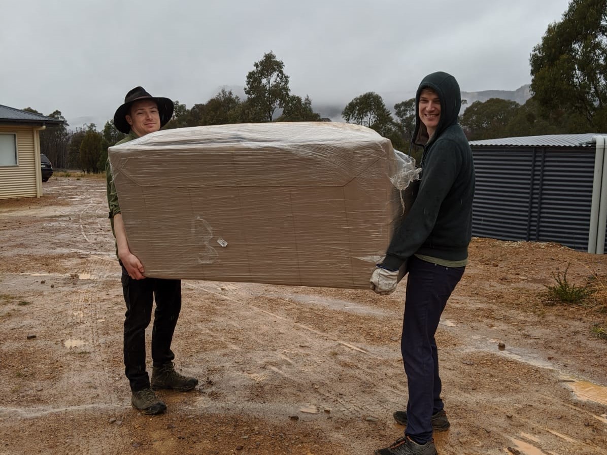One of the biggest stuff ups of the whole project was the transport company delivering the frames and trusses who insisted on using a semi-trailer truck despite me insisting they couldn’t make it through the state forest. It turned out I was right and they had to offload our pre-built house pieces on our neighbour’s property.