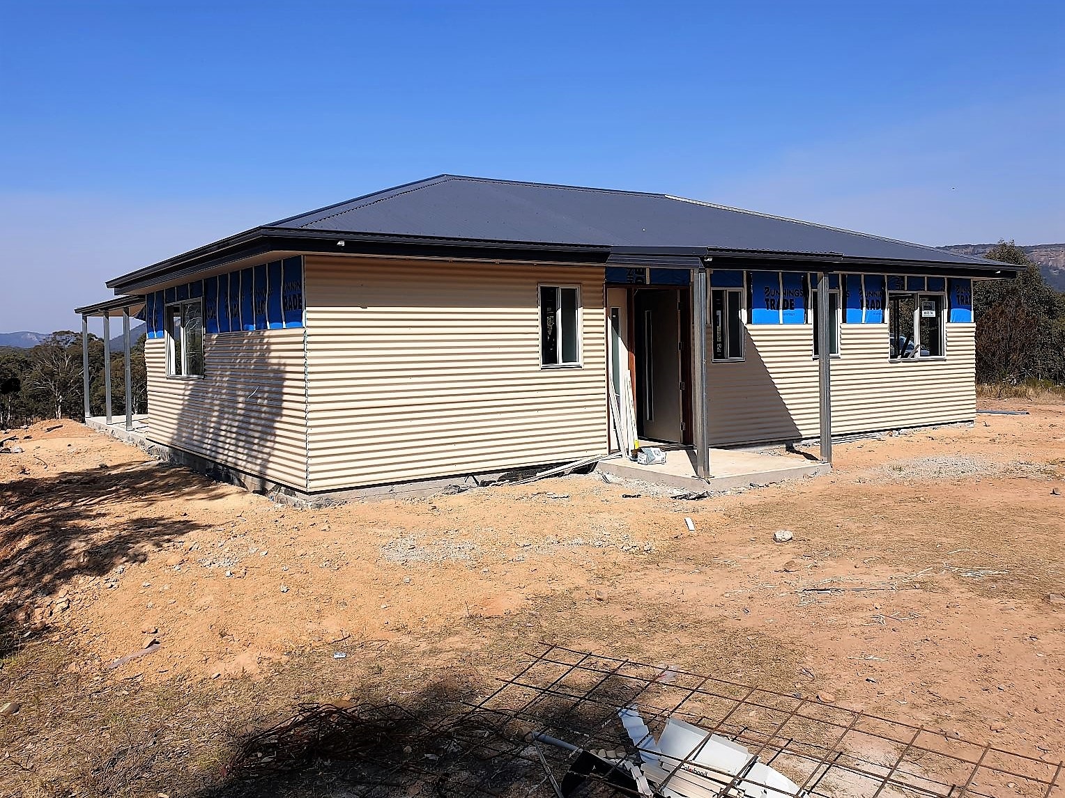 When Ben’s work was about three-quarters done we were hit with the awful bushfires in December last year that swept through our property and tried to burn down our shed and partly-built home. I wrote extensively about this traumatic event here. Following the fire there were further access problems into the valley itself and with getting suppliers and tradies to continue their work. But Ben stuck at it and by March of this year he finally completed the work, much to our satisfaction, relief and delight.
